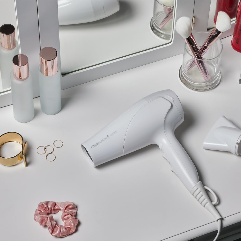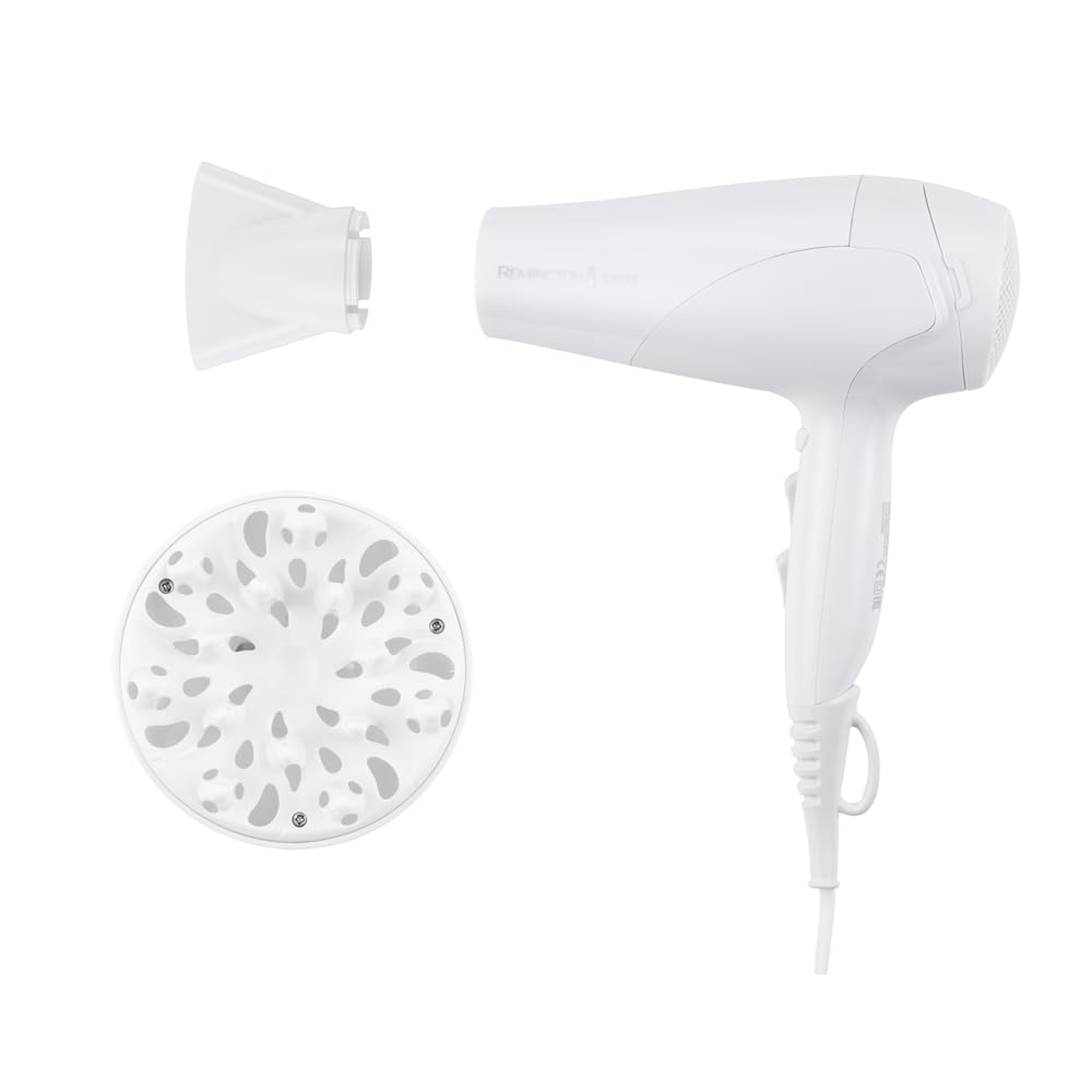 Remington Haartrockner Ionen [leicht, Diffusor & Stylingdüse] weiss (2200W, Keramik-Ionen: schonendes Styling & gleichmässige Wärmeverteilung, 3 Heiz- & 2 separate Gebläsestufen + Abkühlstufe) D3199