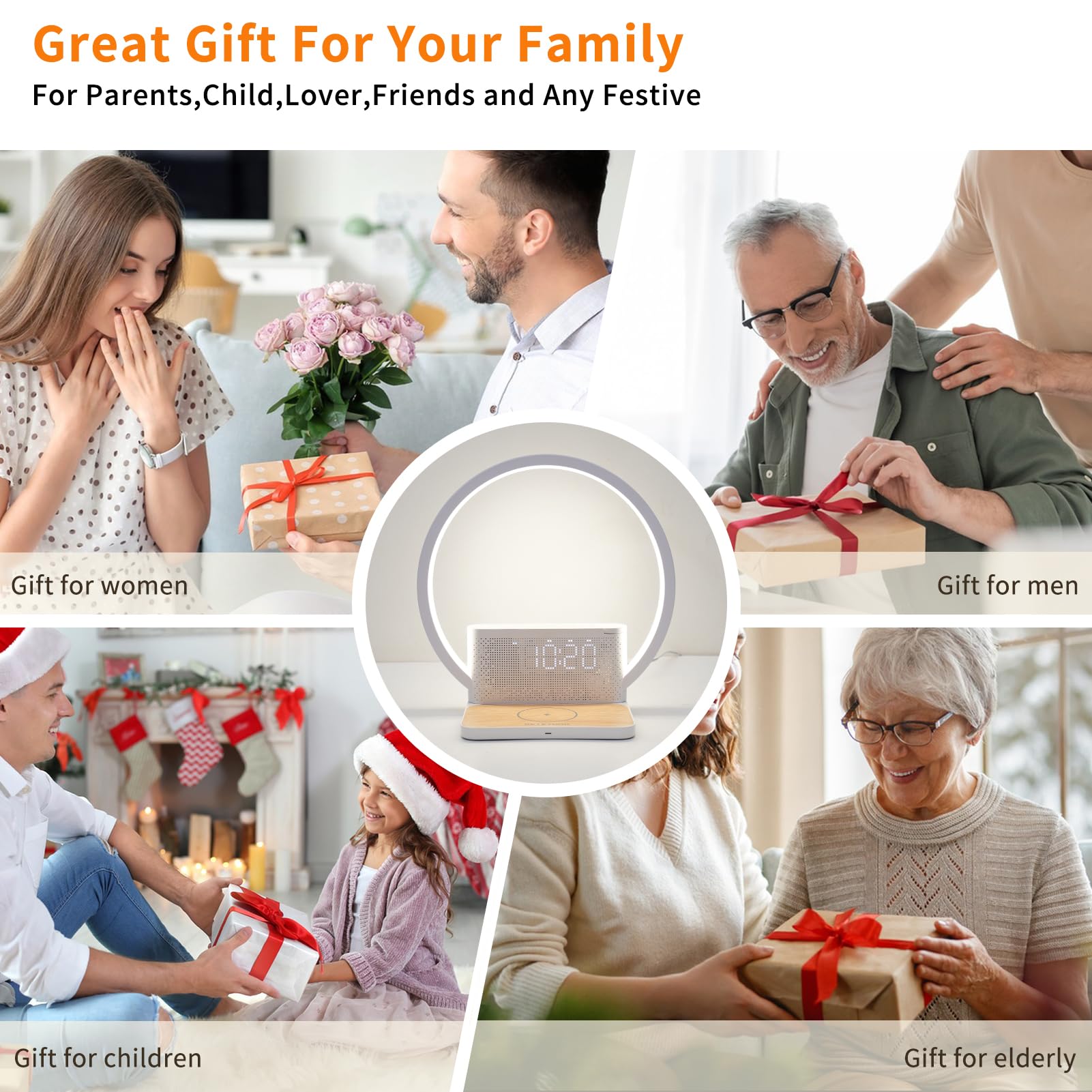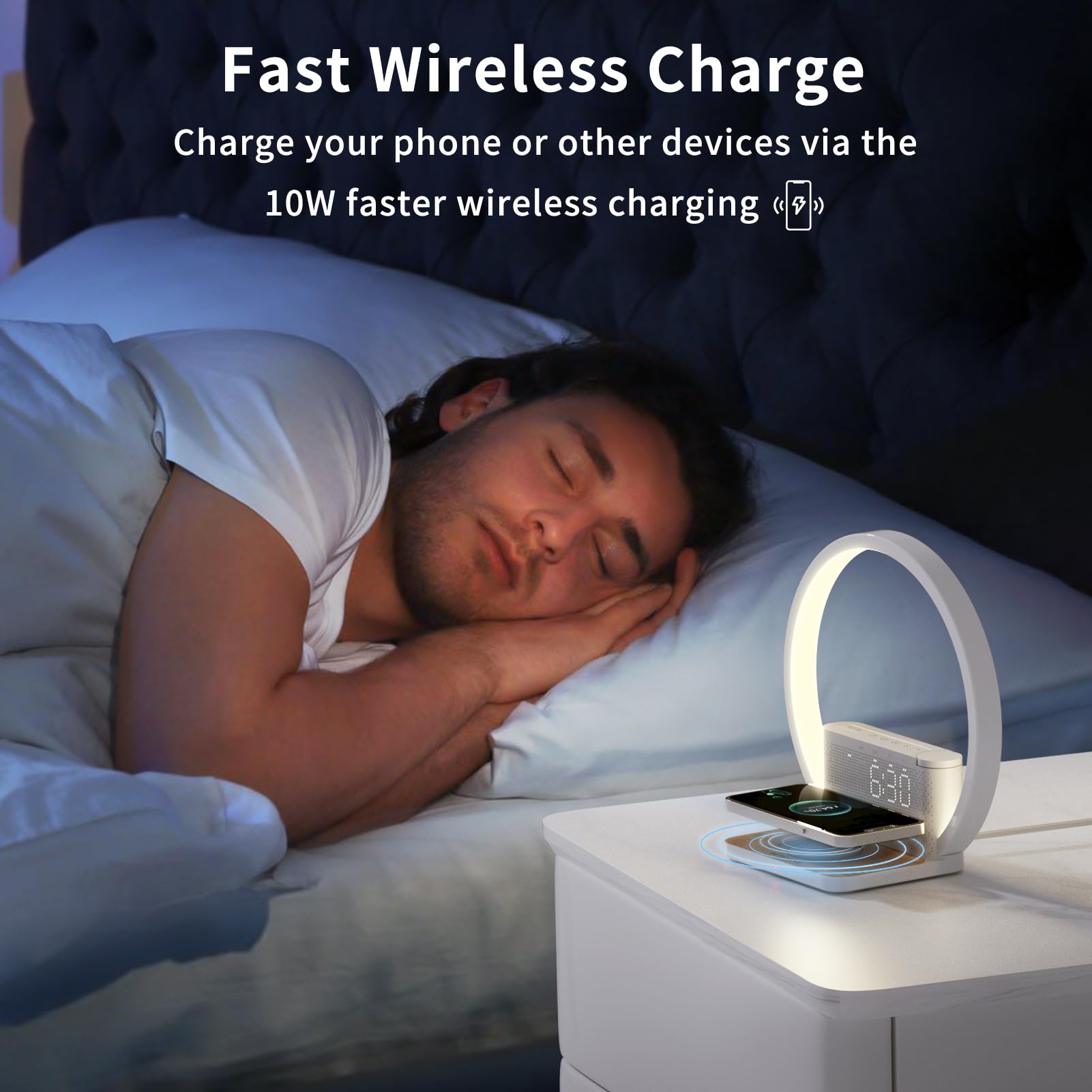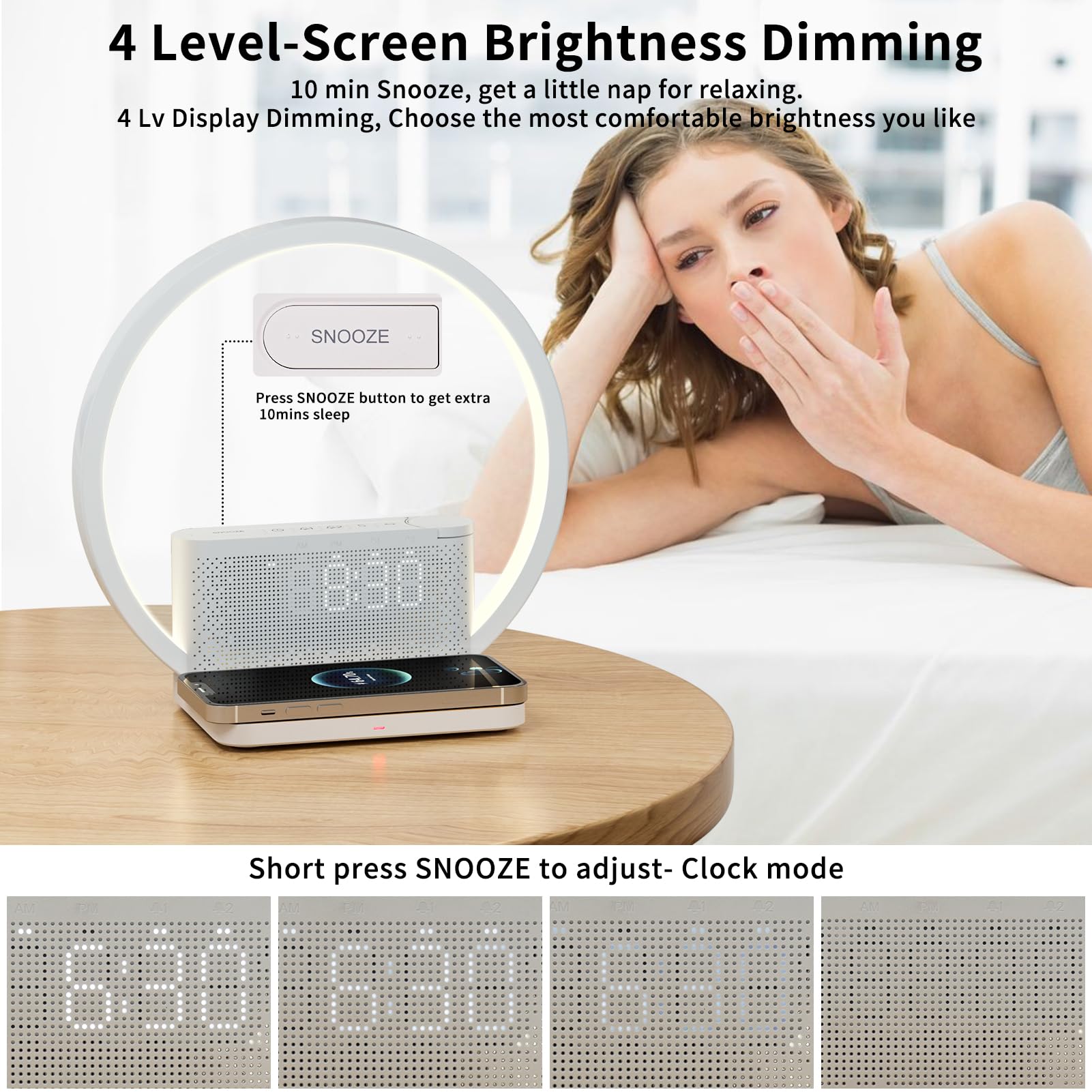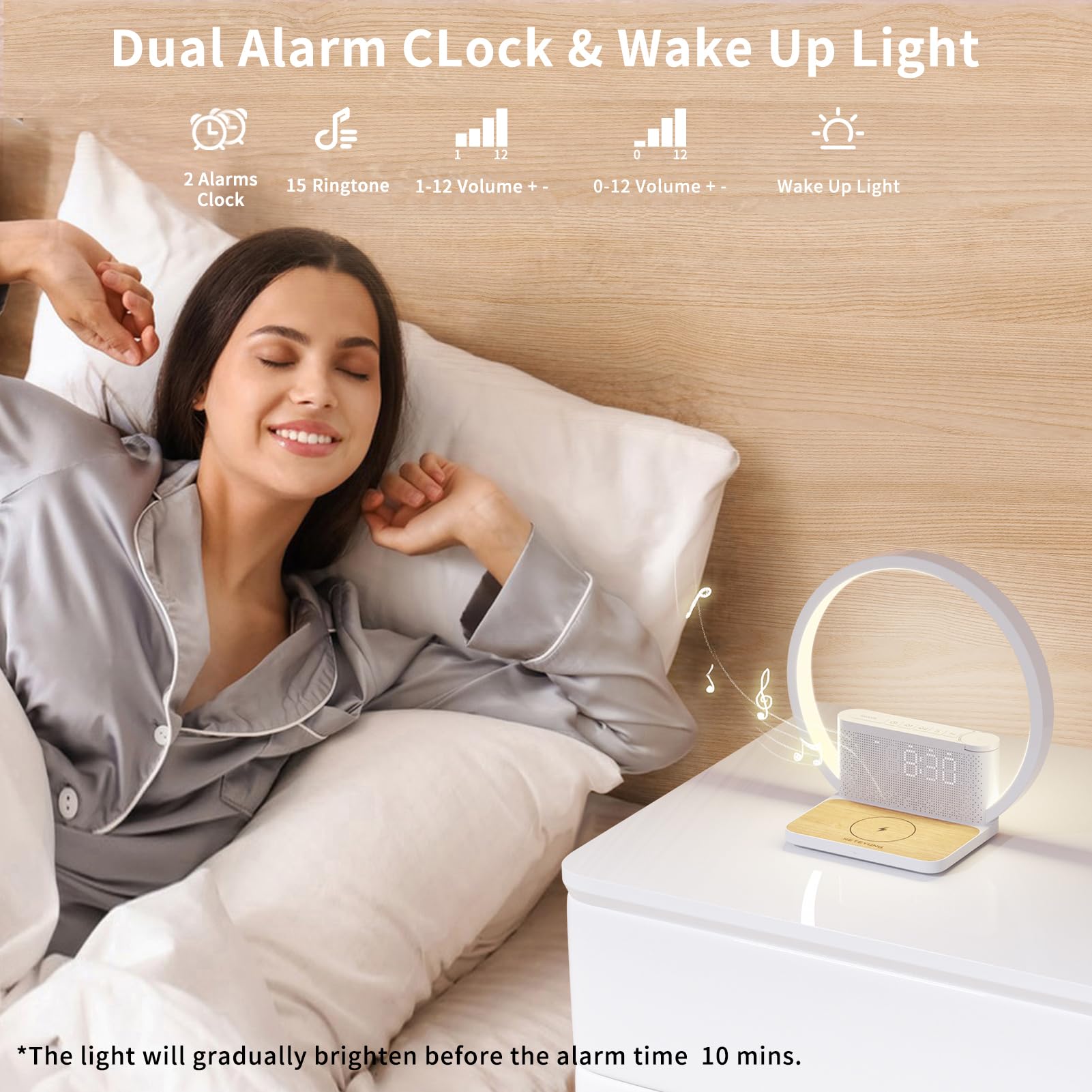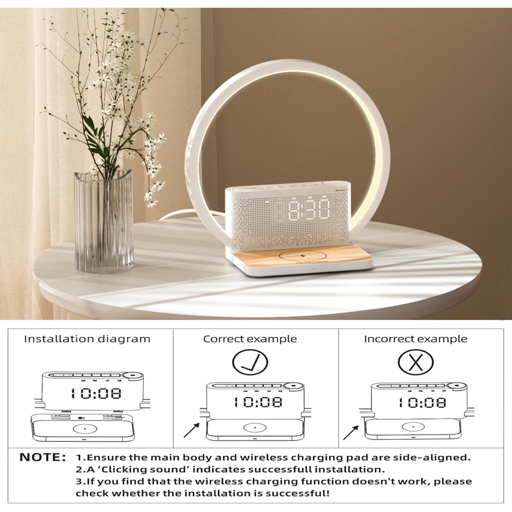 2 Wecker 10 natürliche Klänge Countdown 30/60/90Minuten Schreibtischlampe mit 3-stufiger Dimmung Kabellose Ladefunktion Wake-Up-Licht (im AL2-Modus)