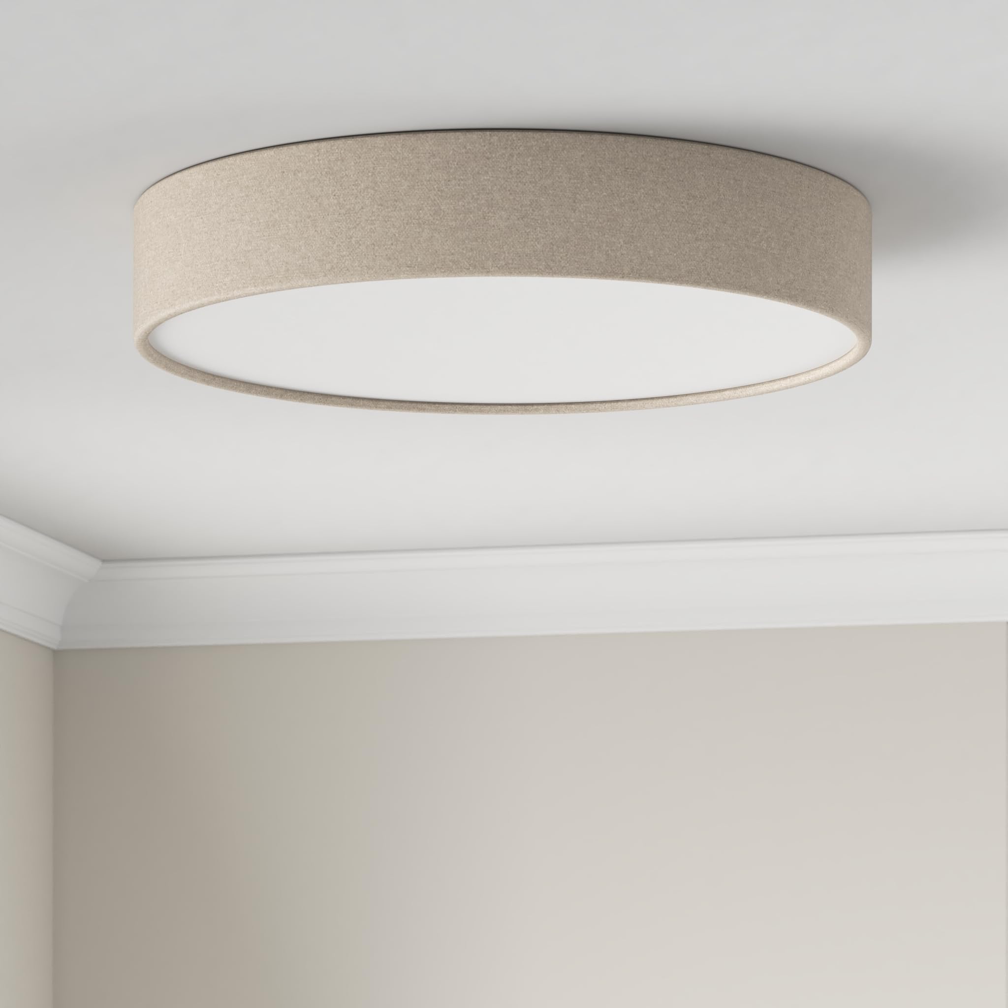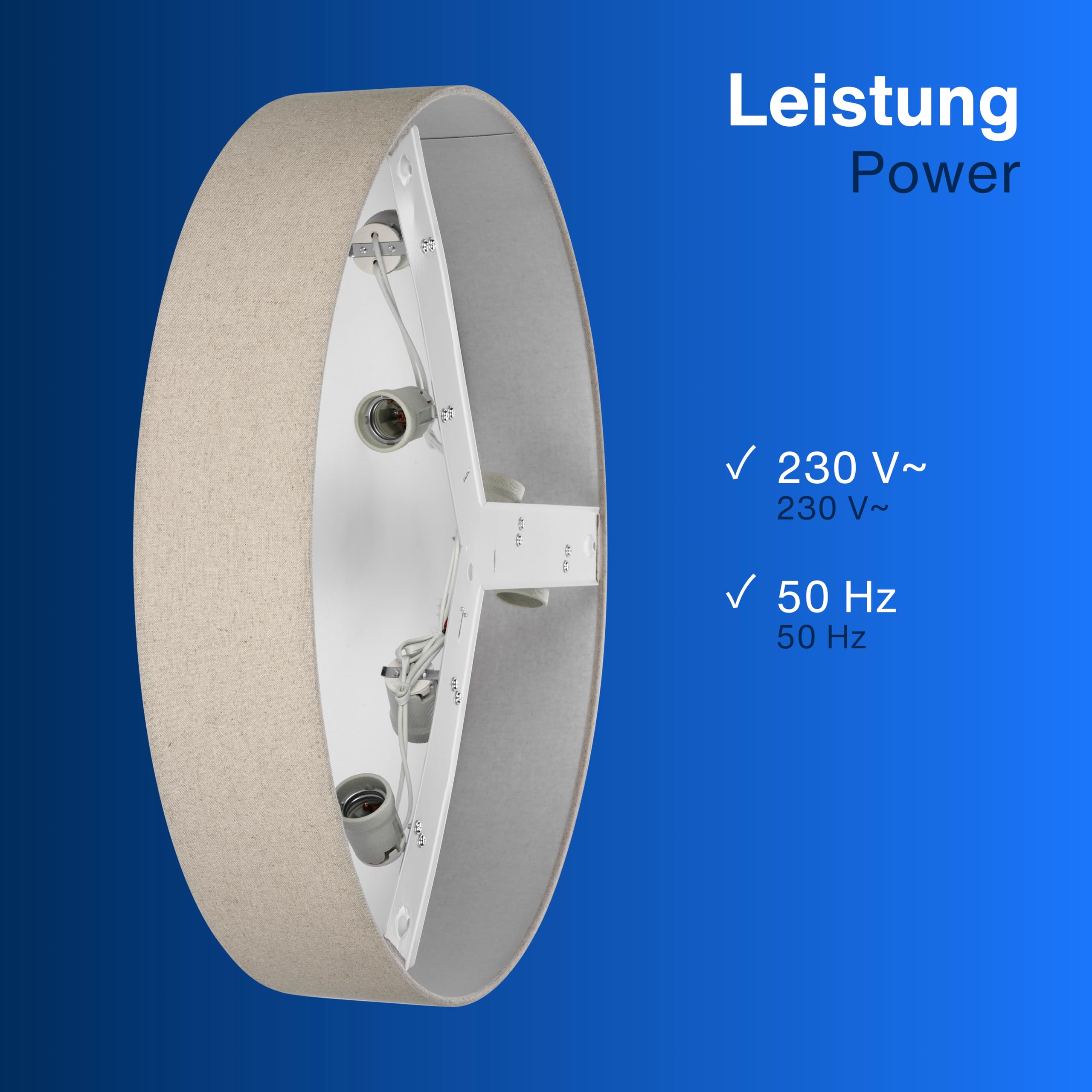 Klassisch & zeitlos: Unsere Deckenlampe verkörpert zeitlose Eleganz. Der Stoffbezug verleiht dem Licht eine sanfte Note, was für eine gemütliche Atmosphäre sorgt und zum Verweilen einlädt. Minimalistisches Design: Das charakteristische flache Profil der Lampe fügt sich nahtlos in verschiedene Einrichtungsstile ein. Dadurch passt sie hervorragend in Wohn-, Schlaf- oder Arbeitszimmer. Flexible Leuchtmittelwahl: Deckenlampe mit sechs E27 Fassungen (Lieferung erfolgt ohne Leuchtmittel). Wir empfehlen die Verwendung von stromsparenden LED Leuchtmitteln bis max. 15 Watt je Fassung. Gleichmässige Lichtverteilung: Der taupe-farbene Lampenschirm aus strapazierfähigem, hochwertigem Leinenstoff sorgt für eine hohe Langlebigkeit sowie für eine gleichmässige Lichtverteilung im Raum. Kinderleichte Installation: Die LED Deckenleuchte ist dank des mitgelieferten Montagematerials schnell und einfach zu montieren.