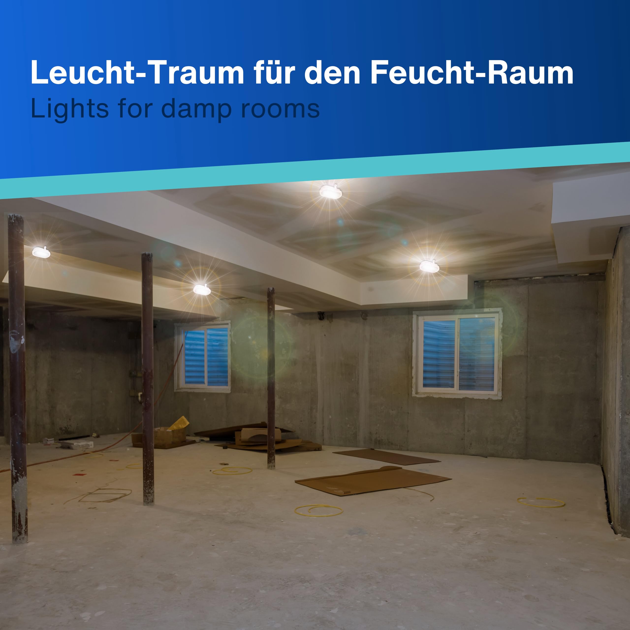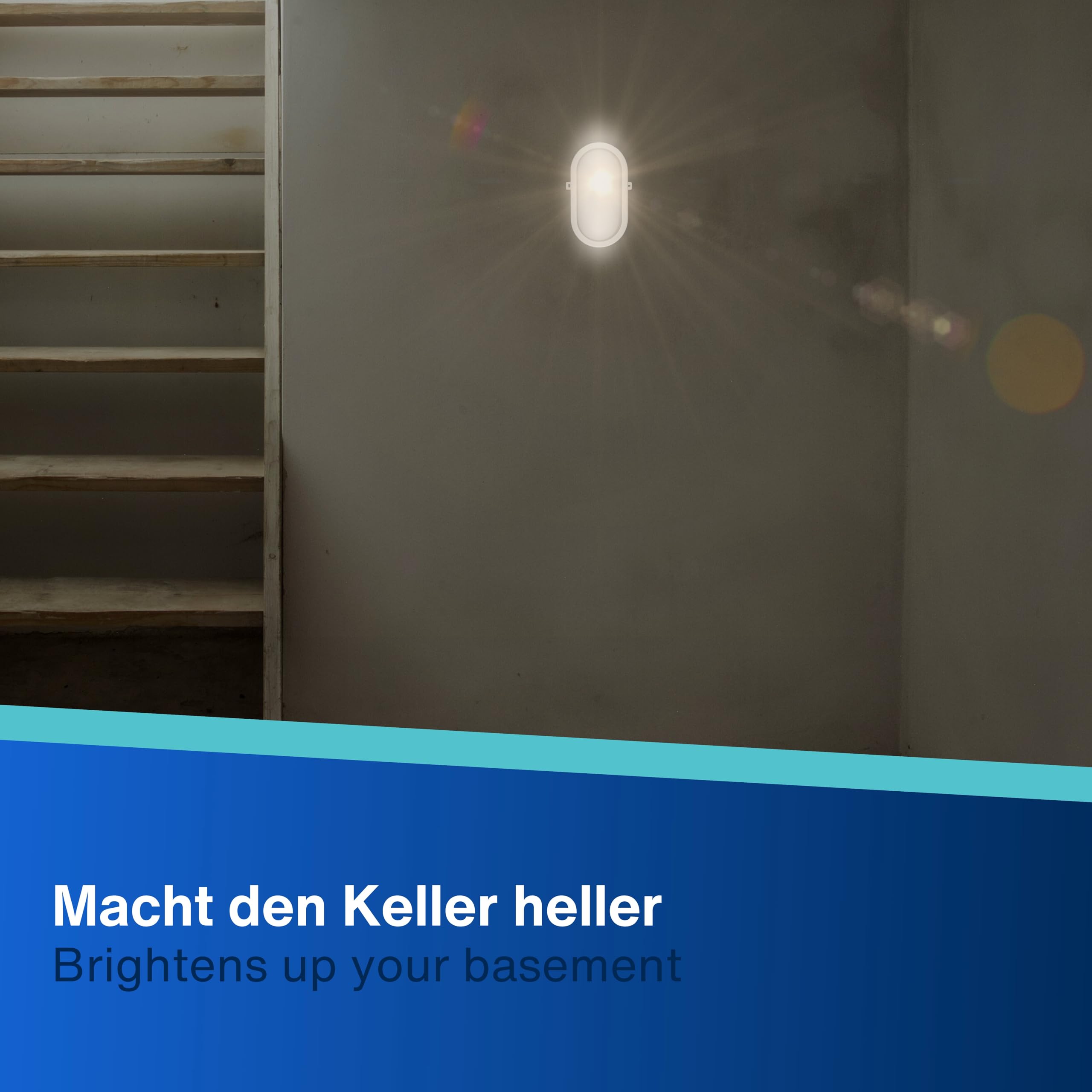 REV Kellerlampe - Feuchtraumleuchte LED oval (10W, 800lm, IP44), einsetzbar als Decken- oder Wandlampe, Feuchtraumlampe, weiss