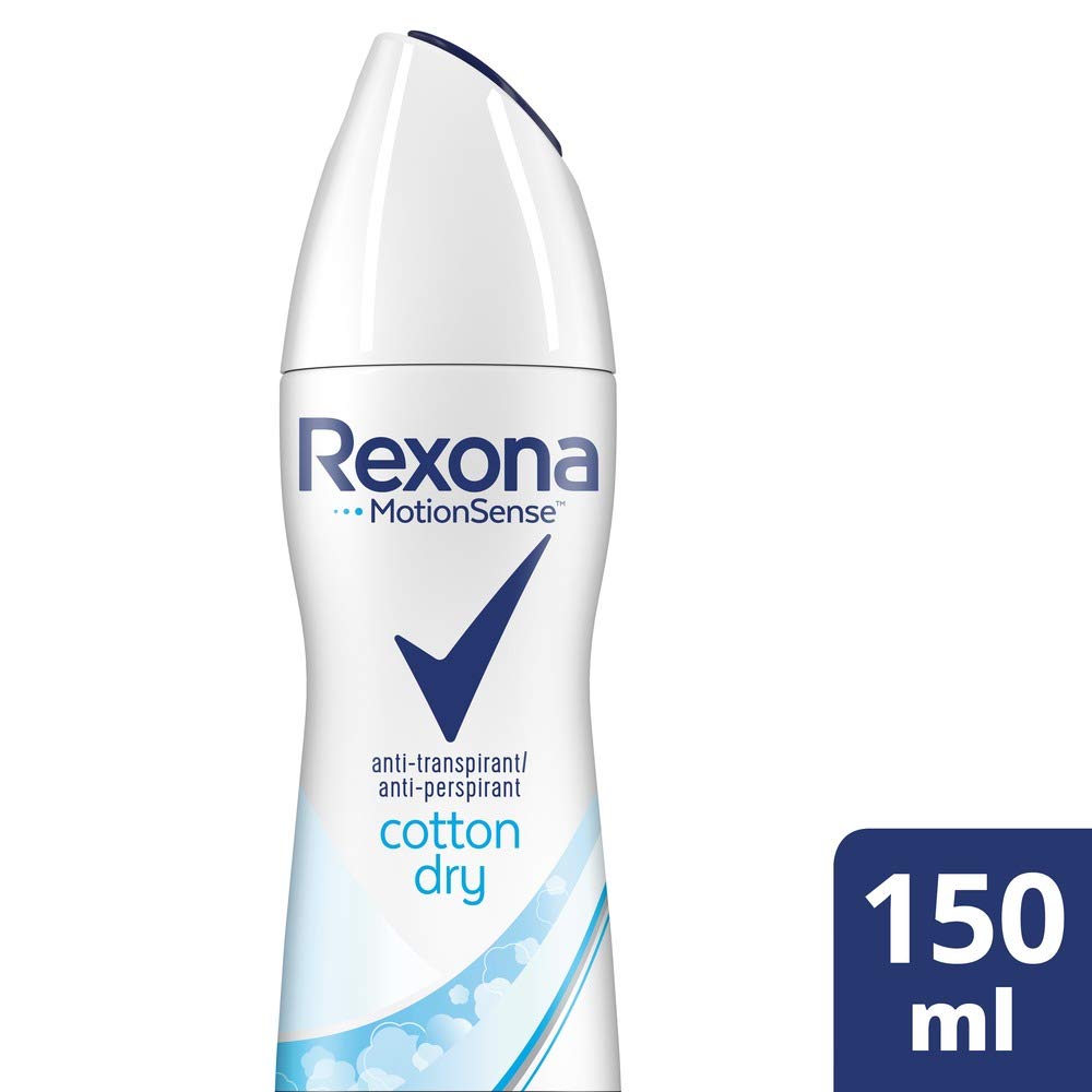 Rexona Women Cotton Dry ist ein Anti Transpirant Deospray, das bis zu 48 Stunden vor Koerpergeruch und Achselnaesse schuetzt. Die Anti-Transpirant-Technologie verteilt aktive Bestandteile auf der Hautoberflaeche, die sich mit koerpereigener Feuchtigkeit verbinden und eine Gel-Schicht ueber den Schweissdruesen bilden. So wird Schwitzen reduziert und Geruch zuverlaessig verhindert. Der Duft ist sauber und leicht floral, von Baumwolle inspiriert, und sorgt fuer ein frisches, gepflegtes Hautgefuehl. Die Formel enthaelt keinen Ethylalkohol.