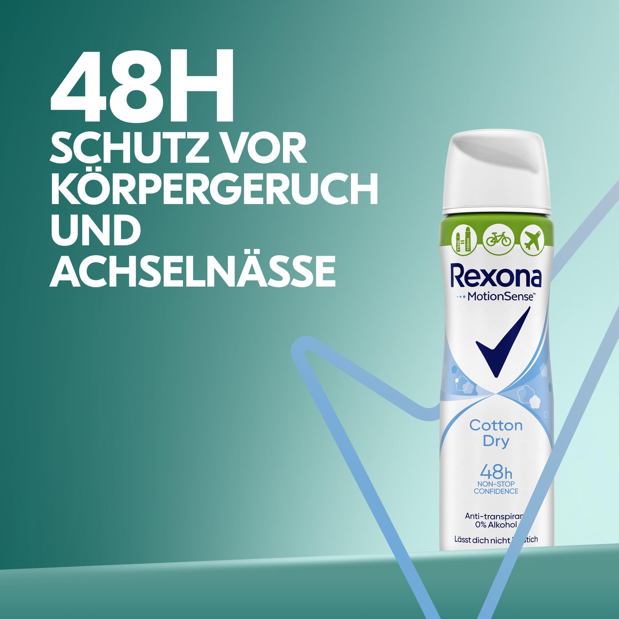 Rexona Cotton Dry Compressed MotionSense Anti Transpirant Spray mit 48 Stunden Schutz und Reisegroesse