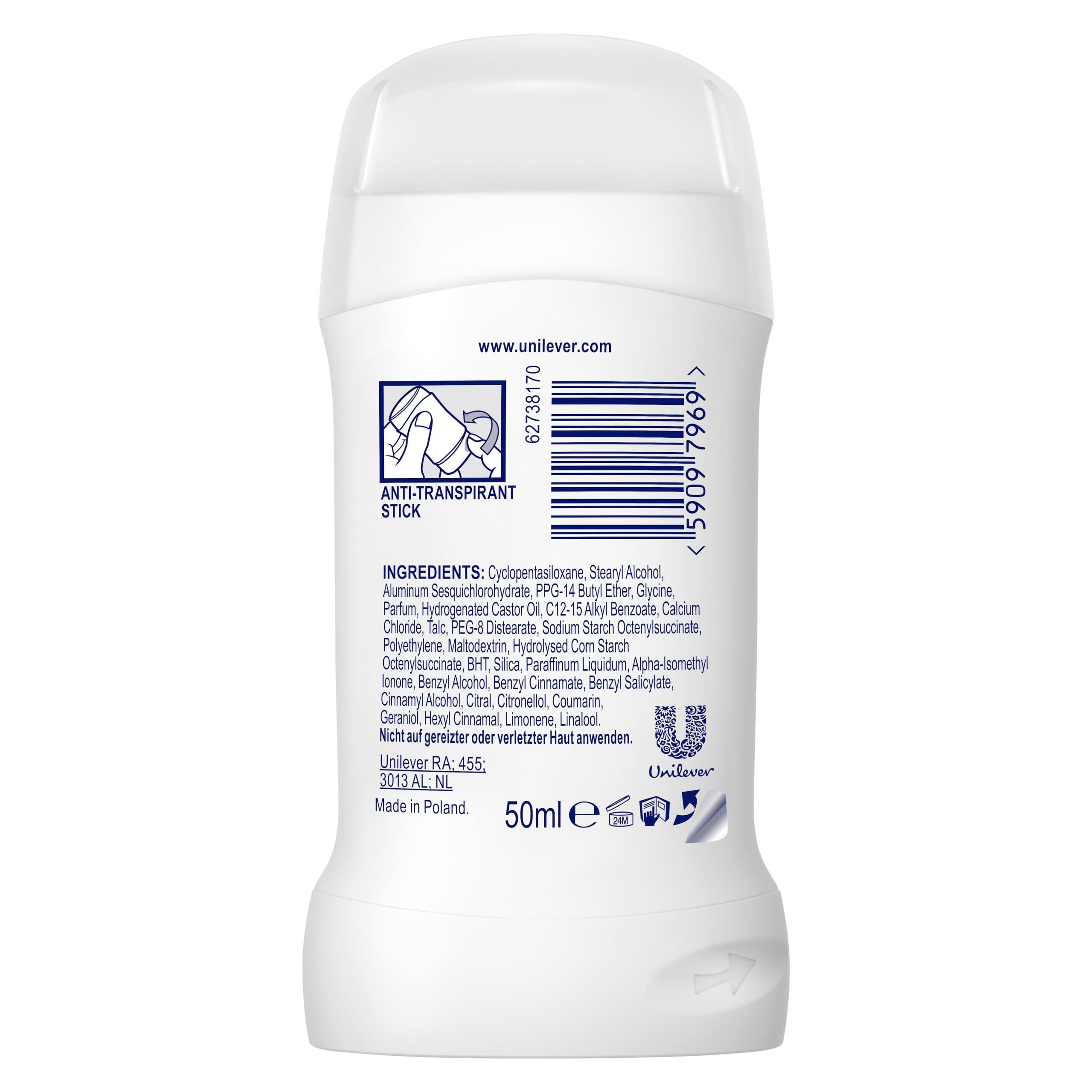 Die feste Textur des Deo-Sticks lässt sich leicht auftragen, zieht schnell ein und hinterlässt keine sichtbaren Rückstände auf der Kleidung – perfekt für die tägliche Routine.
