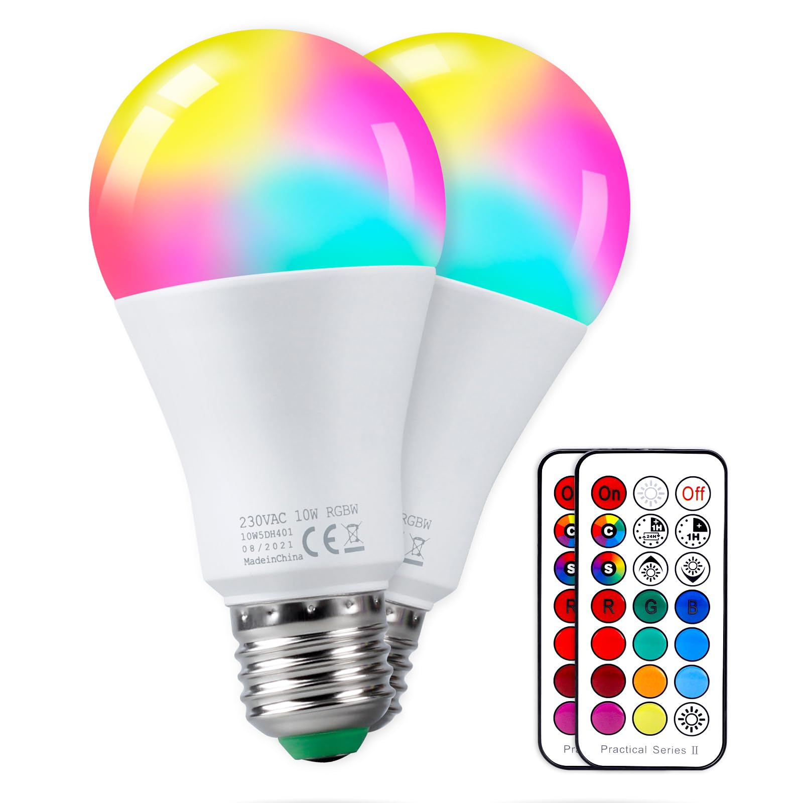 REYLAX Farbige Leuchtmittel LED RGBW Lampe E27 10W, Dimmbare Kaltweiss Edison Glühbirne Lampen Dual Memory 12 Farben LED Birnen, Fernbedienung inklusive, für Wohnzimmer, Partykeller (2-er Pack)