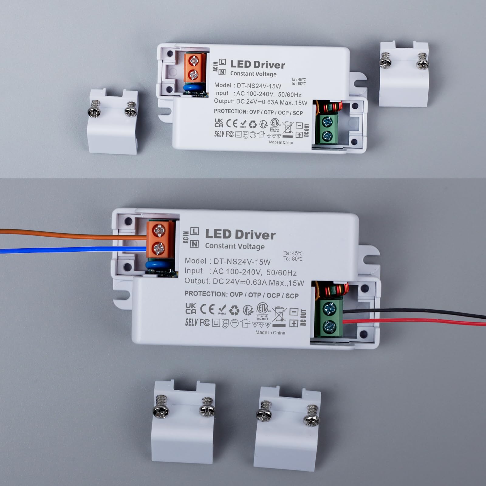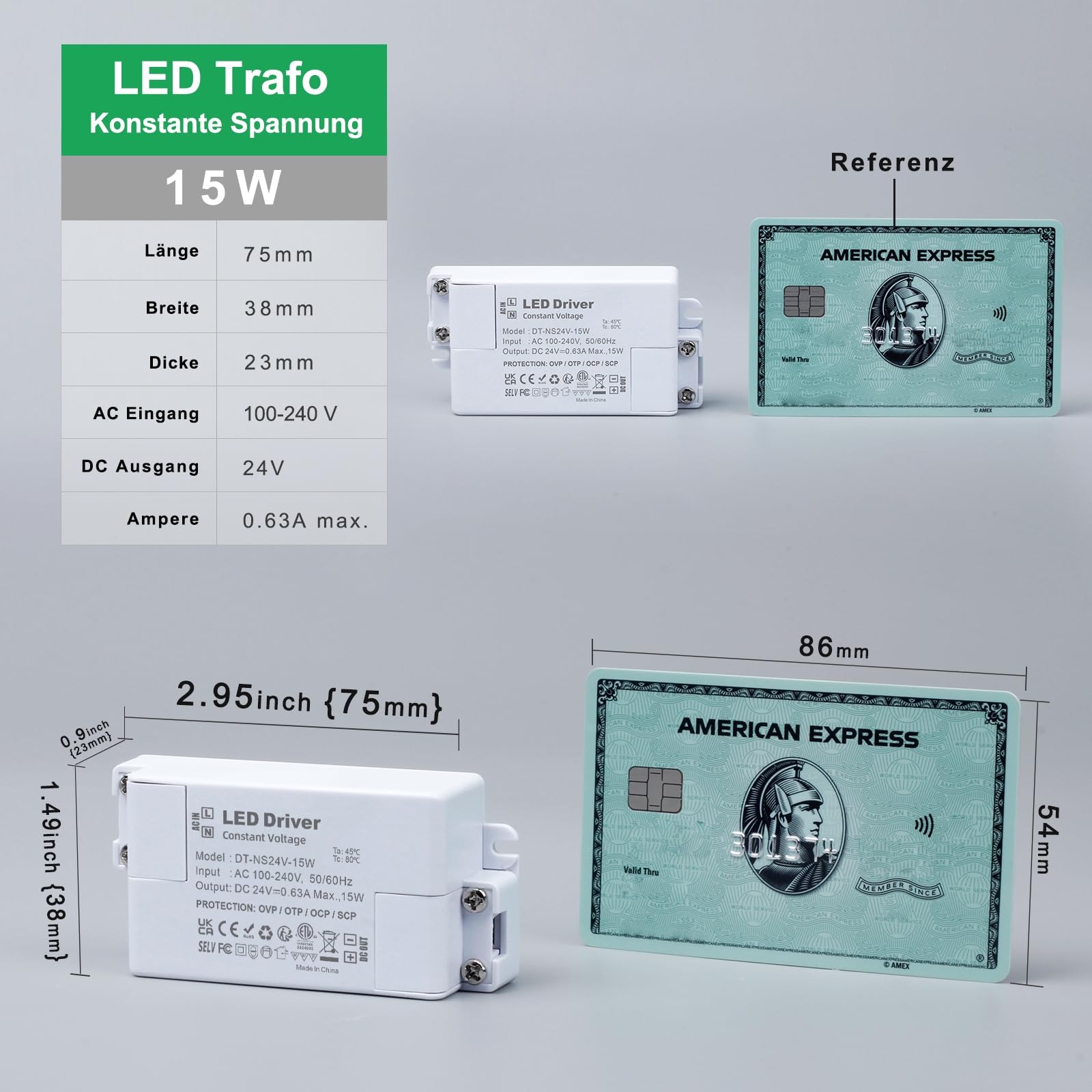 LED Trafo 24V 15W, Trafo 230V auf 24V LED Netzteil AC/DC Schaltnetzteil 0.63A, Konstantspannungs LED Transformator, LED Treiber 24V, LED Niedervolttrafo für MR16 GU5.3 MR11 G4 Glühbirne en LED Lichtstreifen Trafo für LED Eingangsspannung: AC 100-240V. 50/60Hz, Konstantspannungs Ausgang: DC24V, Ausgangsstrom: 0.63A. Maximale Belastbarkeit: 15 Watt. Klasse II kompakter led trafo, led driver für 24Vdc Niederspannungs LED Leuchten. Keine Mindestlast, Kein Transformatorrauschen, Kein LED-Flackern. LED netzteil 24v, kleine Bauweise, Sehr kompakt und leicht. 24v dc led trafo kann an einem trockenen oder feuchten Ort installiert werden, geeignet für LED Leuchtenanwendungen im Innenbereich. IP44 bewertet led treiber 24v. Gehäuse aus schwer entflammbarem ABS-Material und staubdicht. Zuverlässige interne Schaltkreise bieten Überspannungs-, Überhitzungs-, Überstrom- und Kurzschlussschutzfunktionen, Hochwertiges Netzteil für LED Beleuchtungsprojekte. Transformator 230v 24v led trafo für G4, GU5.3, MR11, MR16, LED-Lichtleisten und andere Geräte, 24v Stromversorgung benötigen.