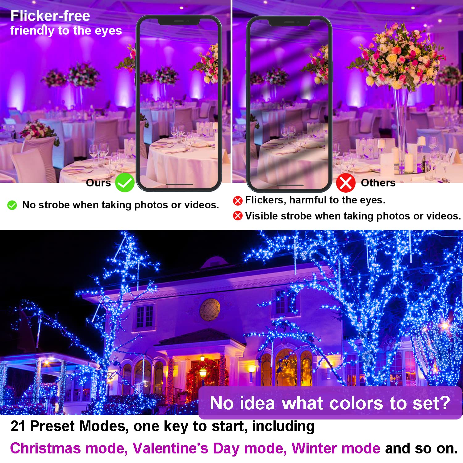 APP SteuerungMillionen von Farboptionen: tägliche Beleuchtung mit einer Taste (2700K warmweiss), DIY FLASH, mehrfarbig und 23 Modi.(Vollfarbverblassen, gemütlich, romantisch, frisch, Vollfarbblitz, Dreifarbblitz, Rot- und Grünblitz, Vollfarbglättung, Dreifarbglättung, Rot und Grün glatt, DIY Blitz, DIY glatt).Sie können die Helligkeit und Geschwindigkeit anpassen.Timing-Funktion --Der Scheinwerfer kann das Timing anpassen, um Energie zu sparen.Speicherfunktion --RGBW Aussenstrahler mit Speicherfunktion. Farbe und Modus bleiben bei der vorherigen Einstellung.IP66 wasserdicht -- Hält jedem Wetter stand.