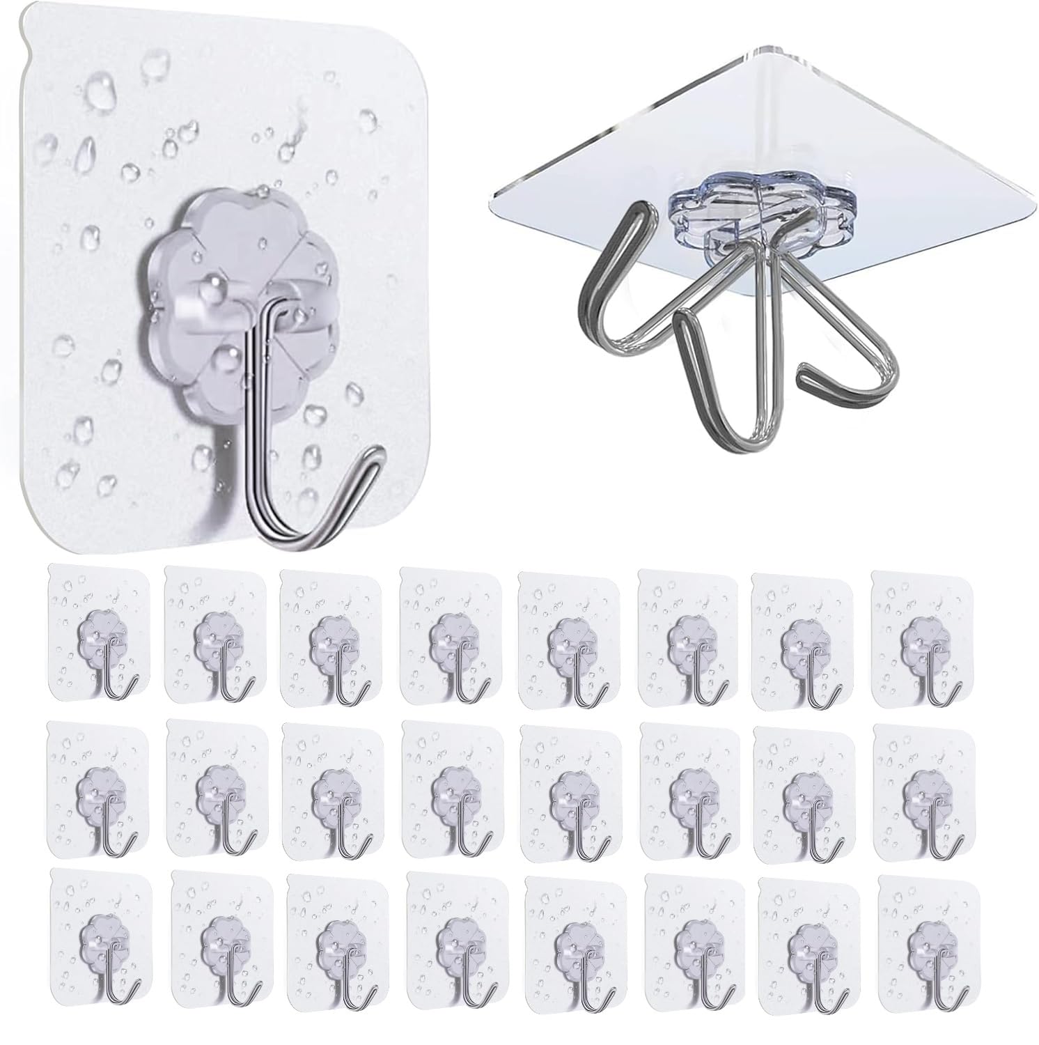 Rhimooay 25 Stück Haken Selbstklebend, Klebehaken Extra Stark Haken ohne Bohren, Wandhaken Selbstklebend, Klebehaken Transparent für Küche Badezimmer Wand & Decke Aufhänger, Max 10kg