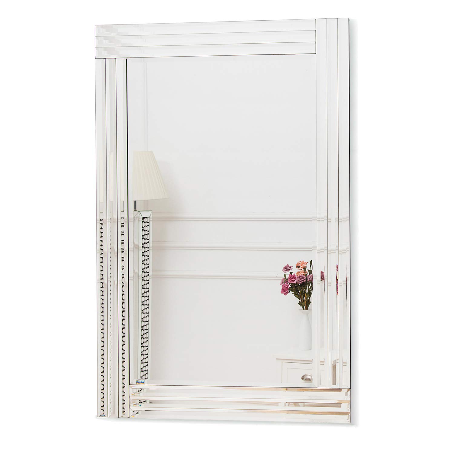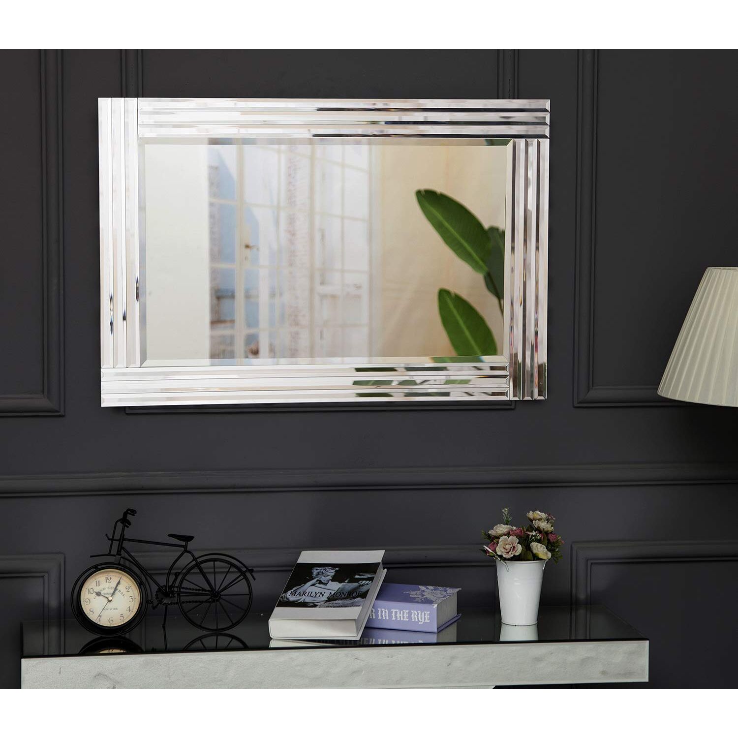 RICHTOP Wandspiegel gross Rechteck Rahmenlos, Venetian Schminkspiegel Schwarz Holz Backing, Triple abgeschrägte Kante Wandmontage für Wohnzimmer, Flur, Barbershop 70 x 100 cm…