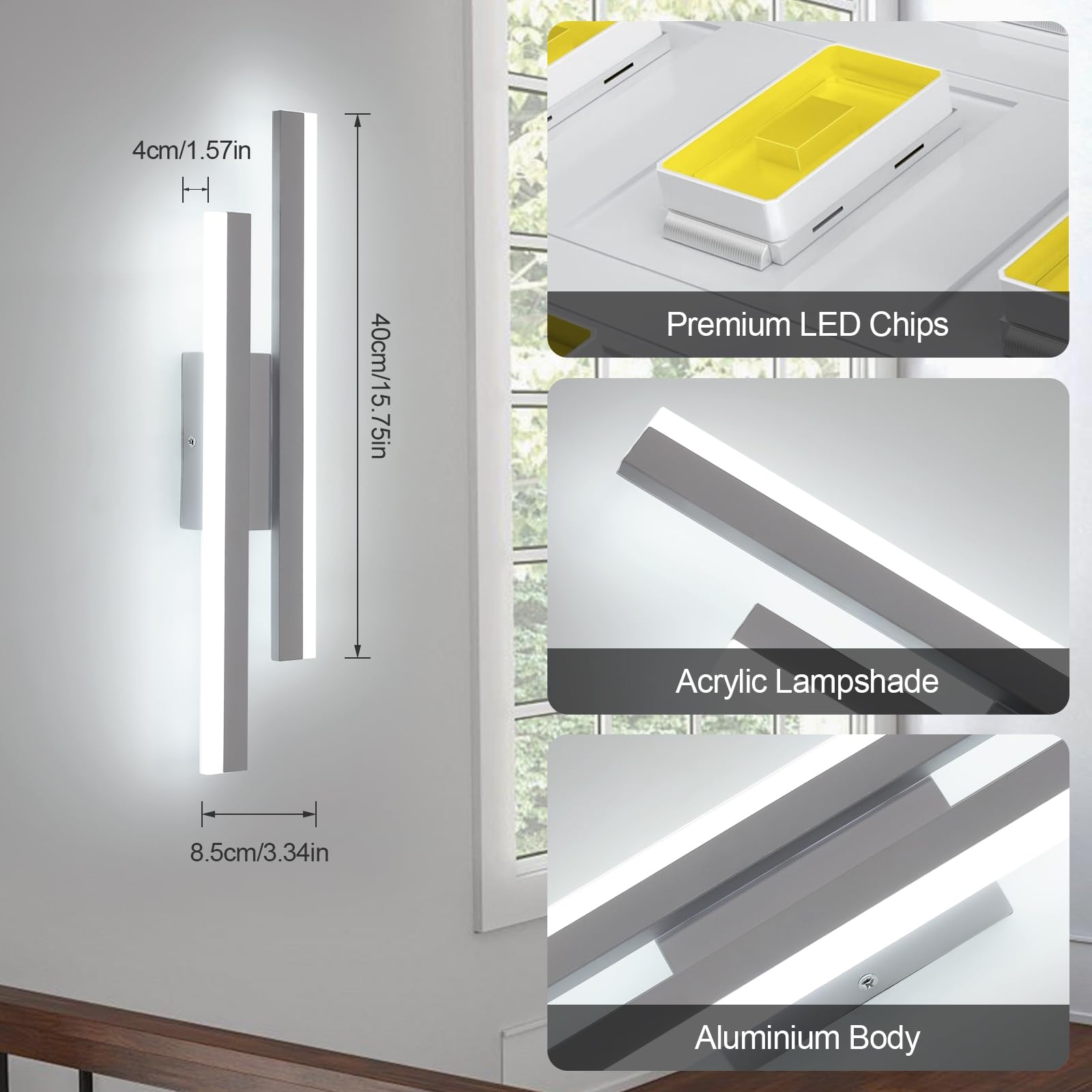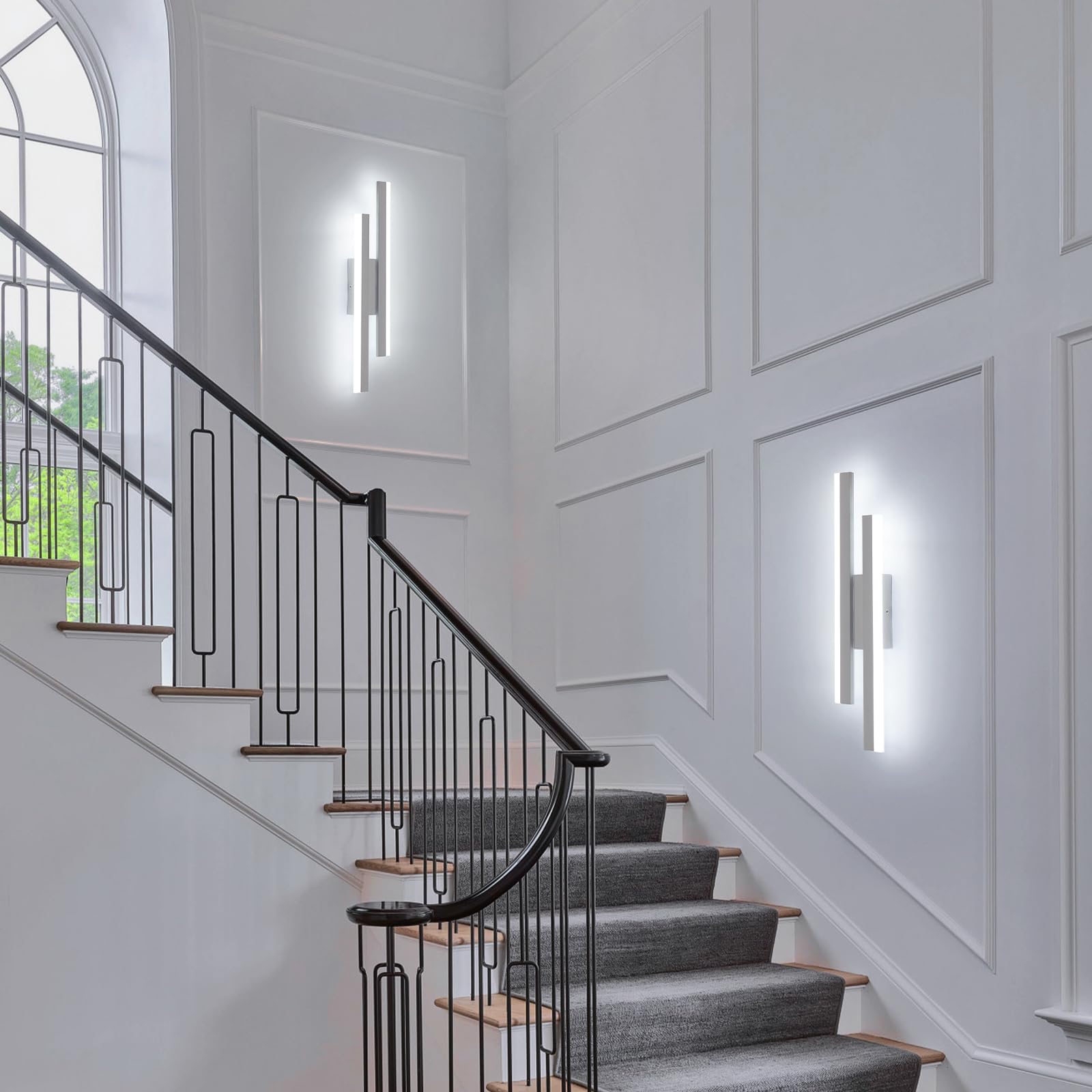 Riserva Wandleuchte LED Innen Moderne, 16W 1800LM Wandlampe, Kreative Lange Parallele Wandleuchte für Wohnzimmer Korridor Treppen, Kaltweiss 6500K, Weiss, 40cm