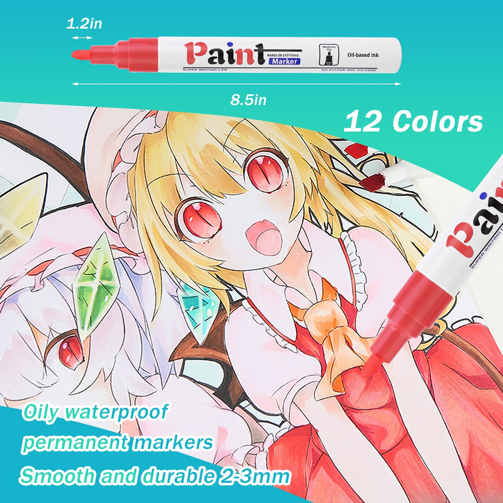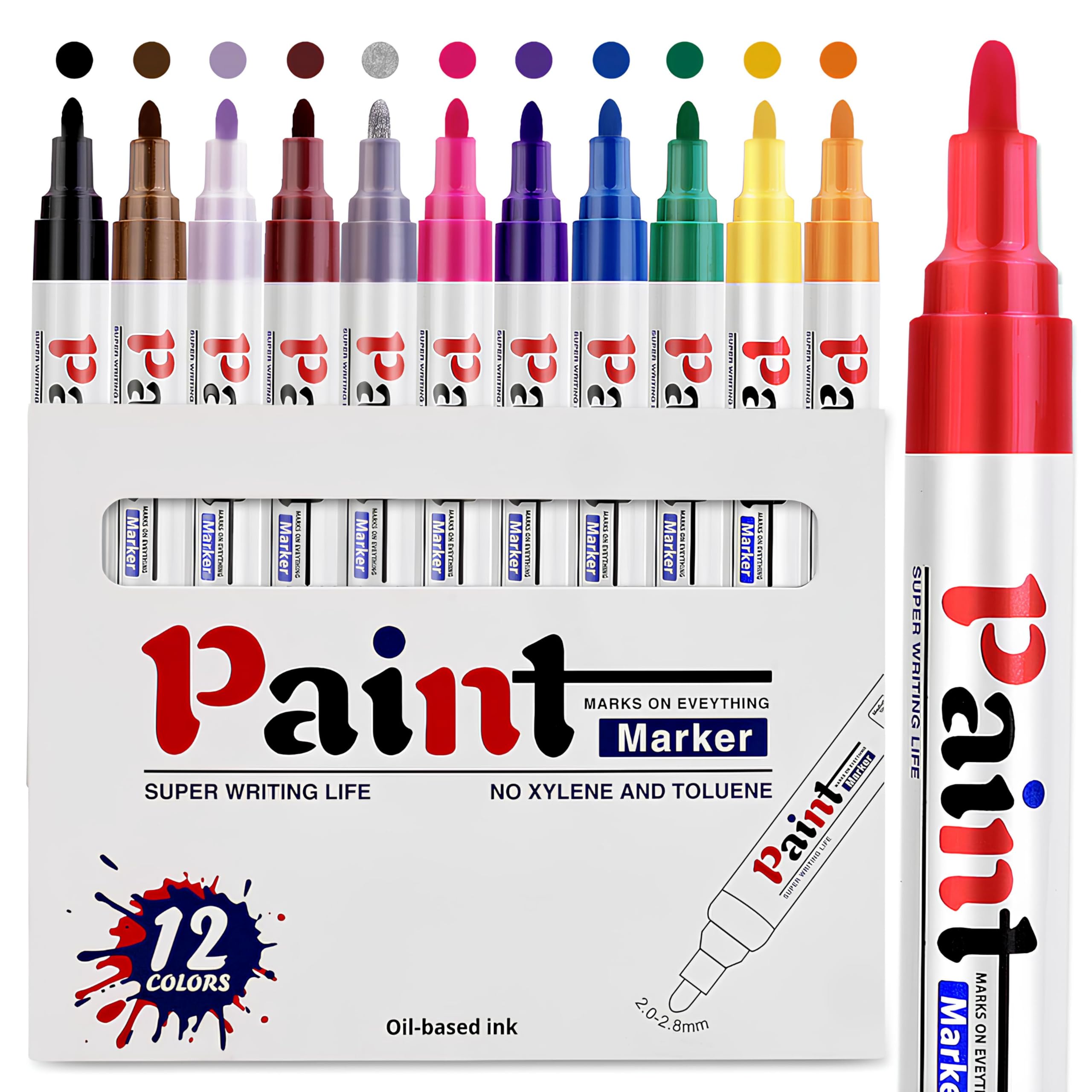 Risiours Wasserfeste Stifte Permanente Marker Set, Lackstift: DIY-Projekte auf verschiedenen Oberflächen - Stein, Glas, Holz, Metall, Kunststoff (12 Farben)
