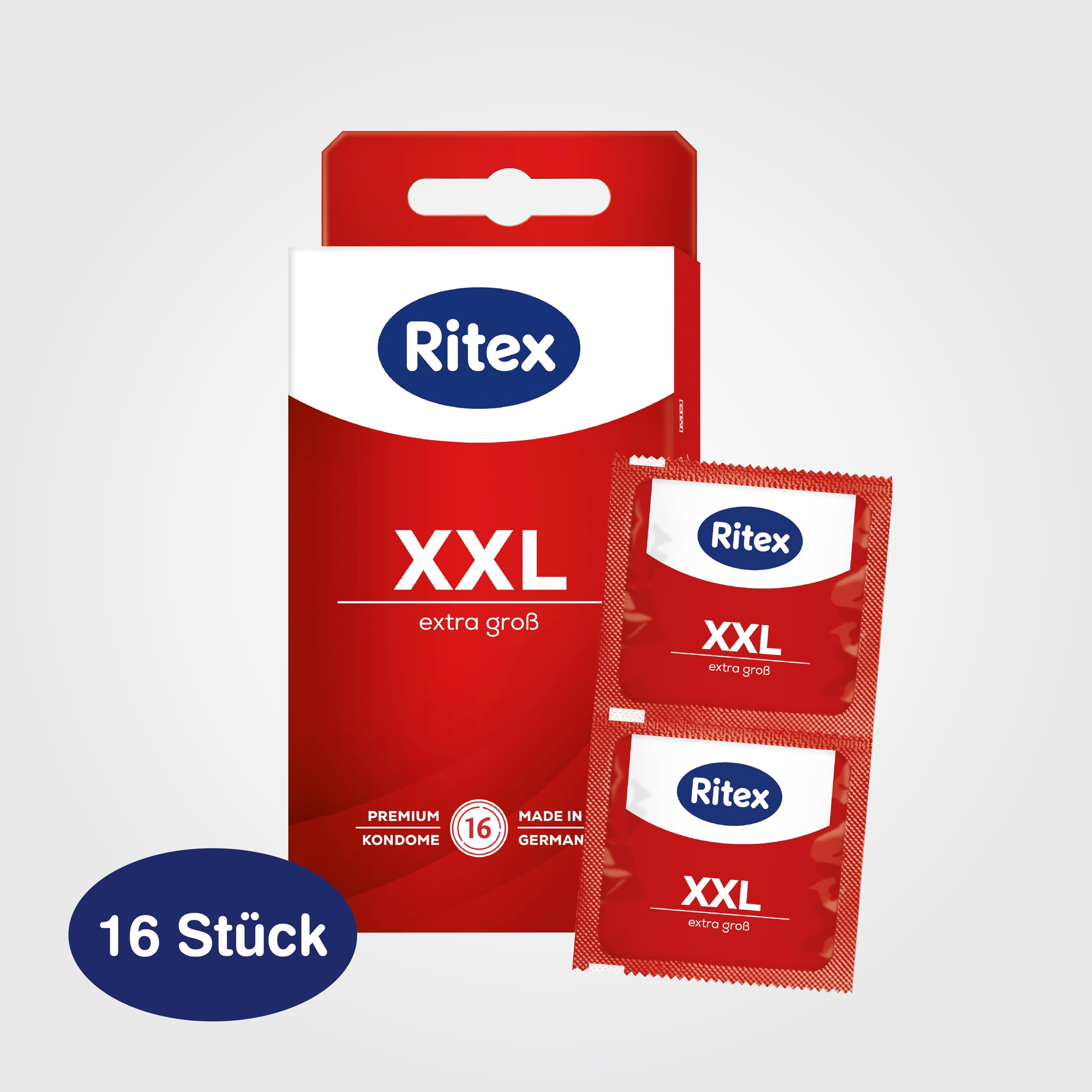 Ritex Kondome XXL – Extra grosse Kondome 16 Stück für mehr Komfort & intensives Empfinden, Kondom mit extra viel Gleitfilm – Vegan, dermatologisch getestet, Made in Germany (Packung mit 2)