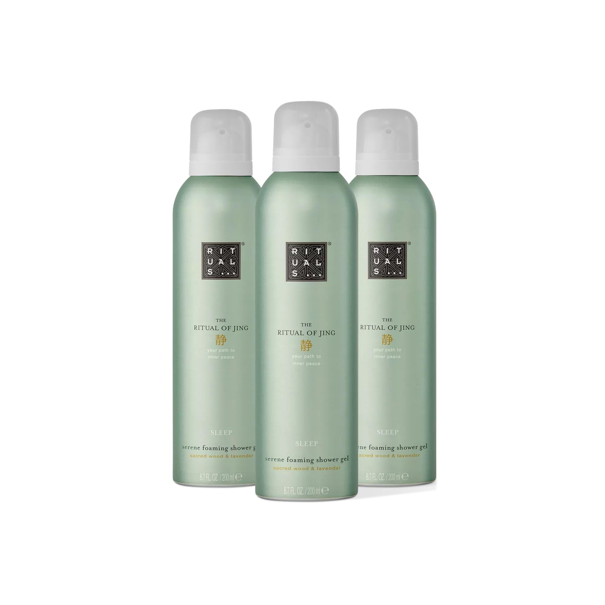 RITUALS The Ritual of Jing Vorteilspack 3 x 200 ml – Duschschaum mit Sandelholz & Lavendel – Entspannender und Beruhigender Duft für besseren Schlaf