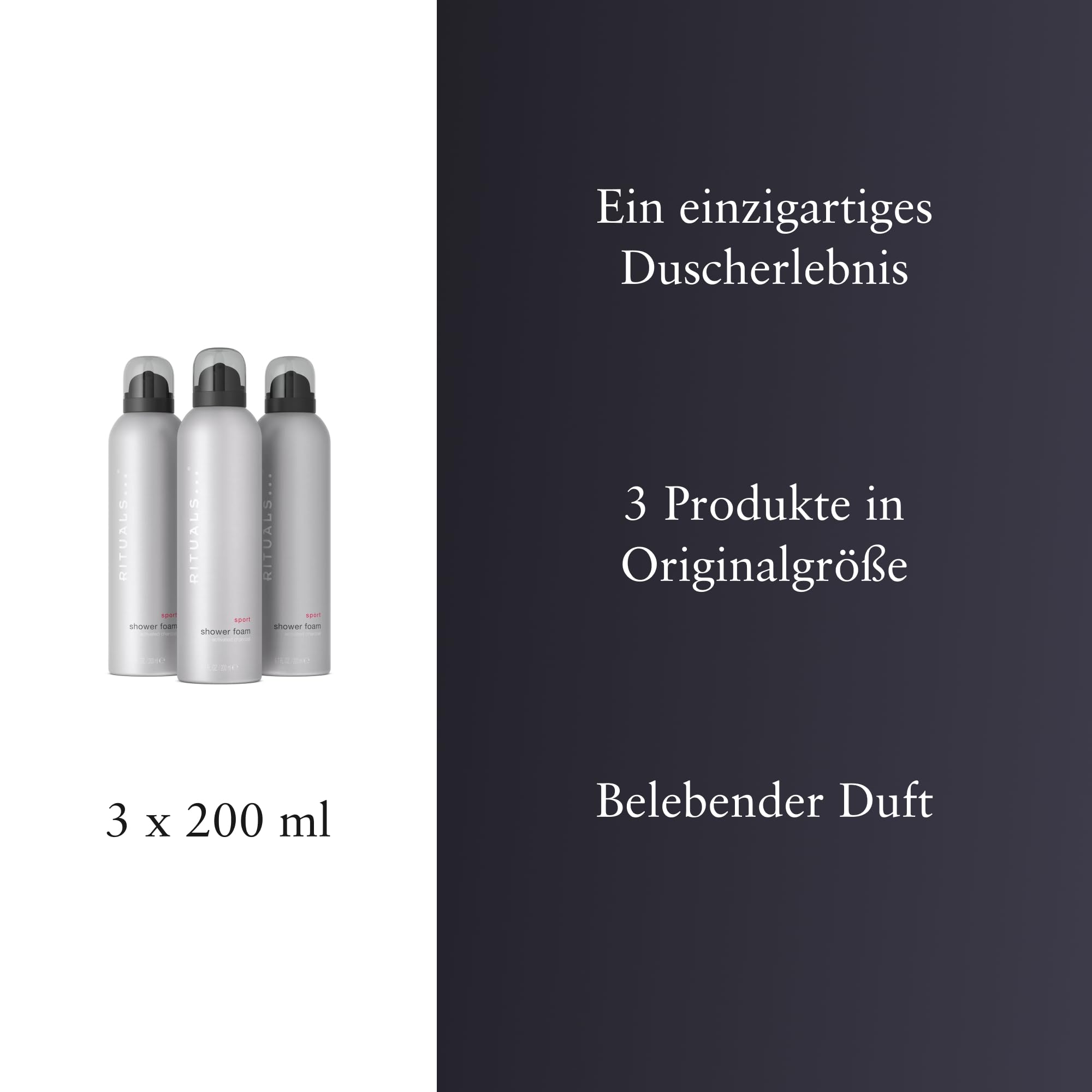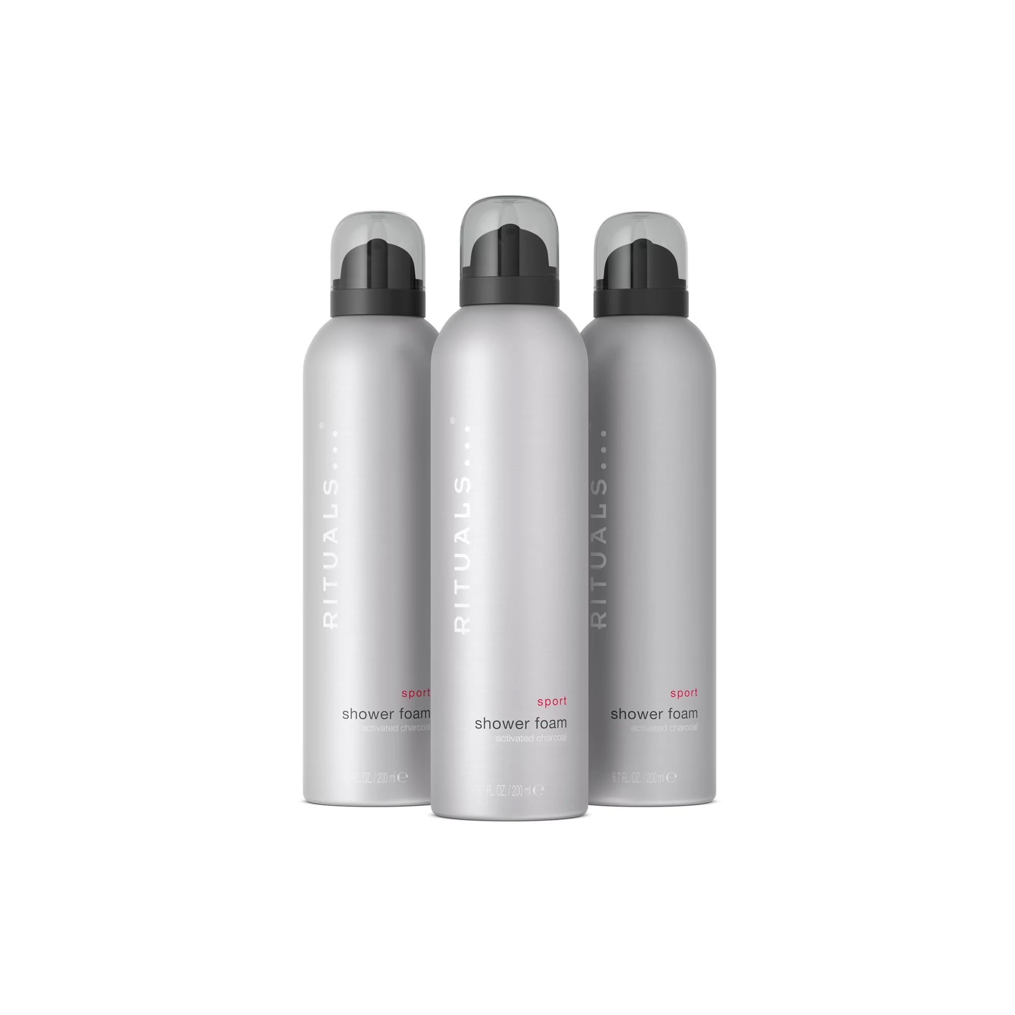 RITUALS Sport Vorteilspack 3 x 200 ml – Duschschaum mit Aktivkohle – Ölabsorbierend & Belebend – Frischer, Holziger Duft
