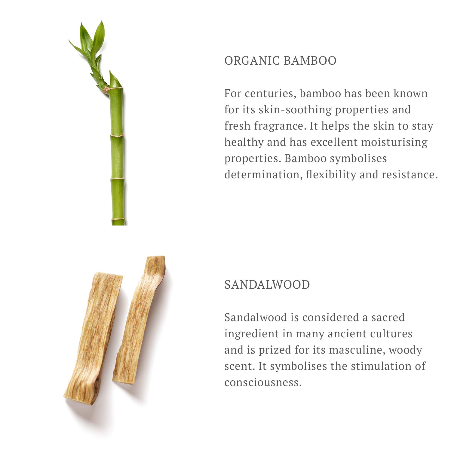 Sanfte Reinigung mit Bambusextrakt und Sandelholz: Der Bambusextrakt sorgt für eine beruhigende und nährend Wirkung, während Sandelholz für einen warmen, maskulinen Duft sorgt, der Ihre Sinne verwöhnt und langanhaltend bleibt.