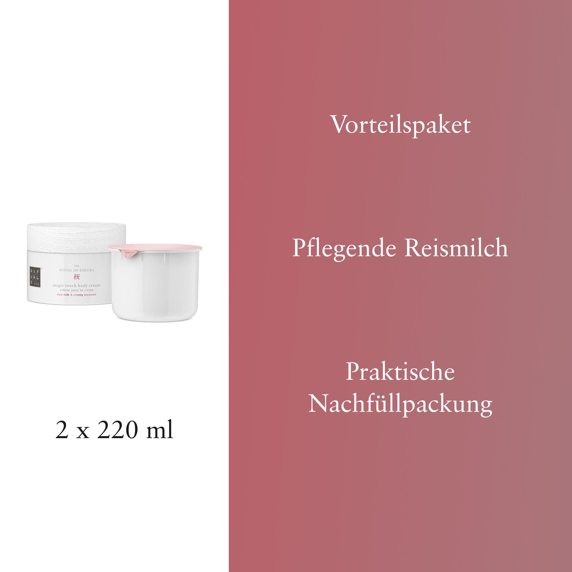 RITUALS The Ritual of Sakura Körpercreme Nachfullset, 2x220 ml – Feuchtigkeitsspendende Body Lotion mit Reismilch, Kirschblüte, Antioxidantien & Vitamin E