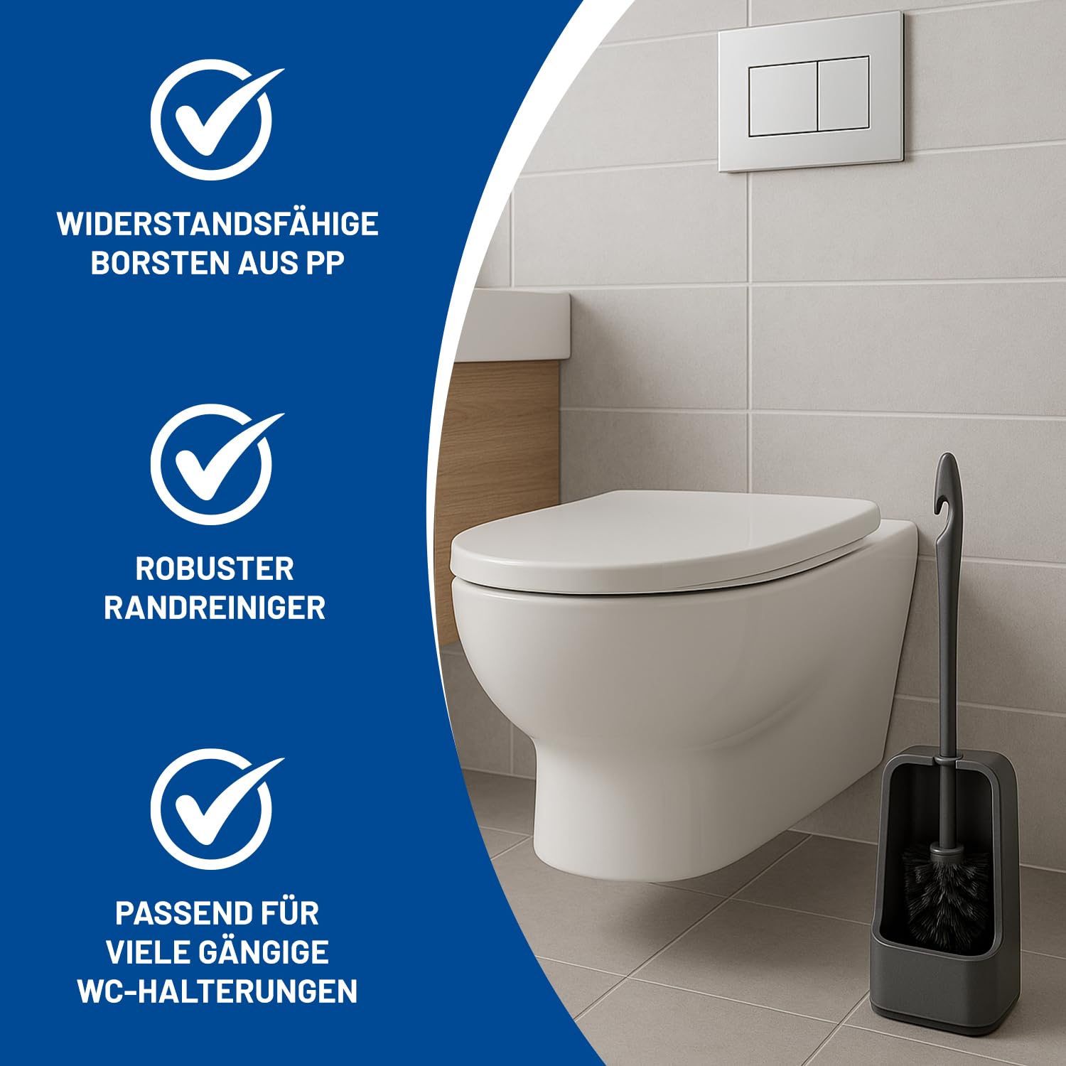 - HOCHWERTIGE PP-BORSTEN: Die strapazierfähigen Borsten aus Polypropylen (PP) sorgen für gründliche Reinigung ohne Kratzer. Diese Toilettenbürste ist besonders langlebig und eignet sich damit perfekt als Ergänzung für Ihr Badezimmer.