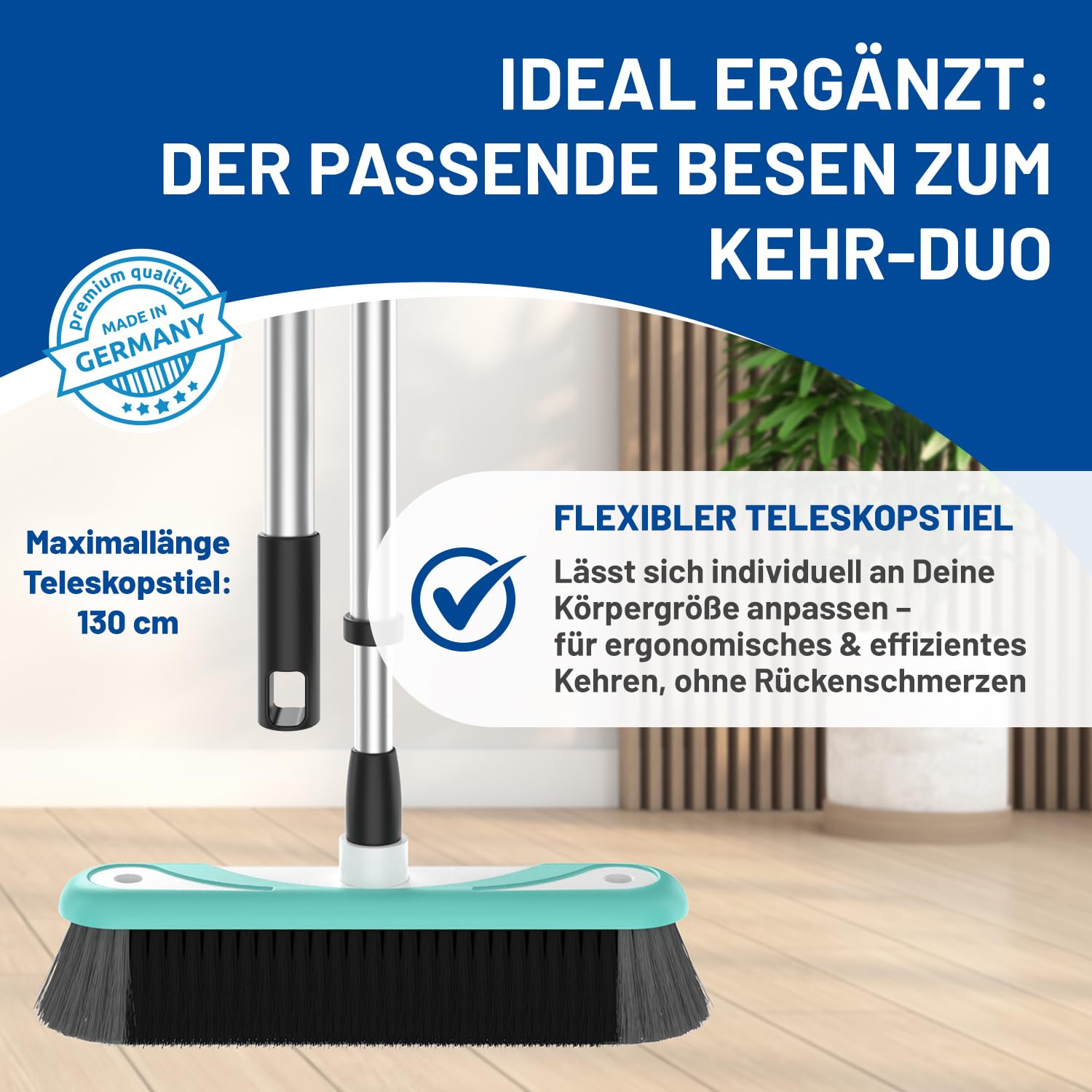 - VIELSEITIG EINSETZBAR: Ob drinnen oder draussen – unsere Kehrgarnitur ist robust und flexibel einsetzbar. Ideal als Handbesen mit Schaufel in der Küche, im Garten oder in der Garage.
