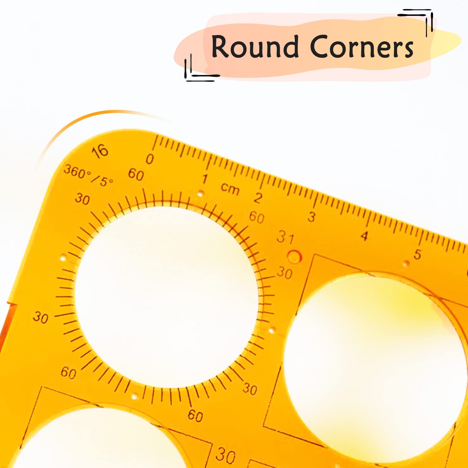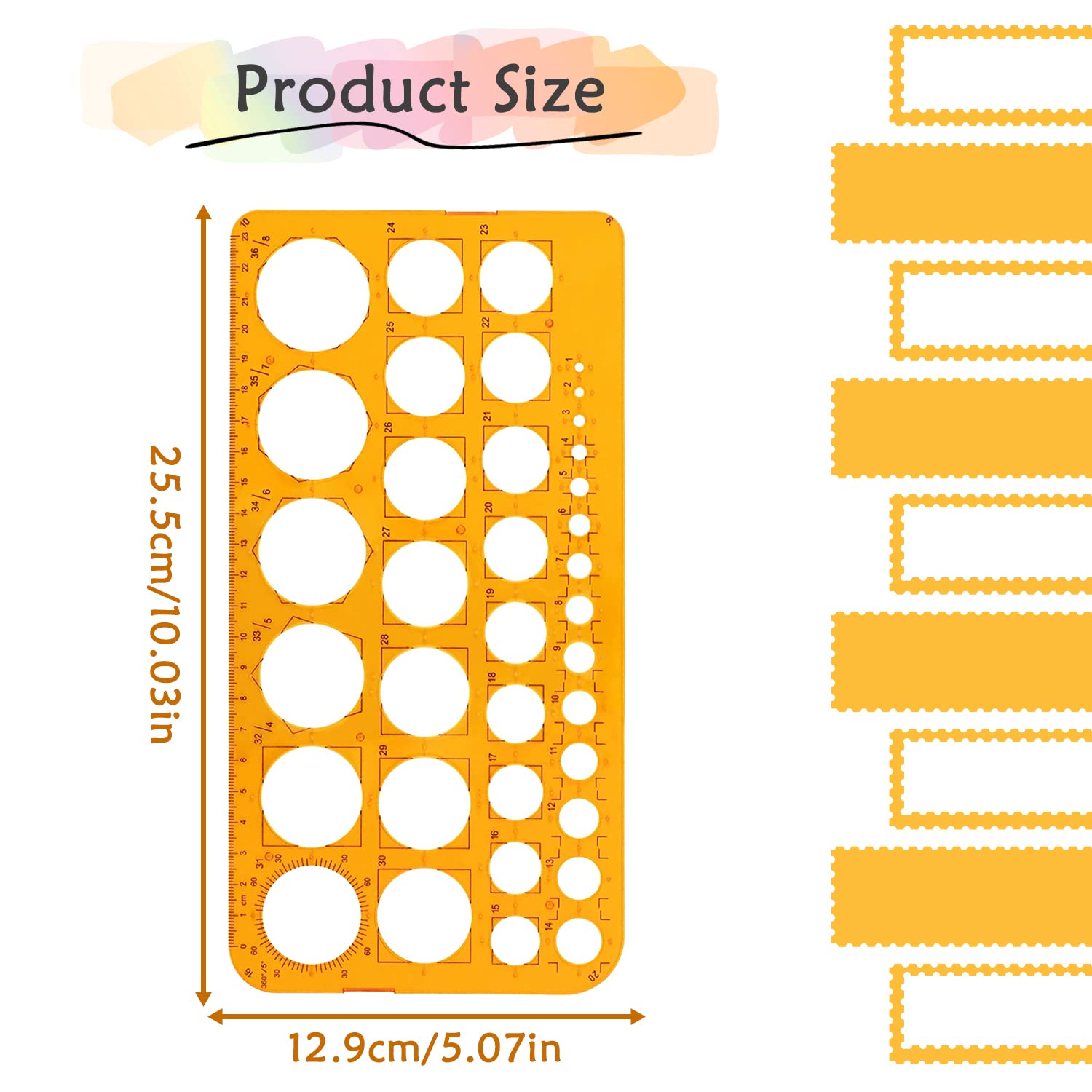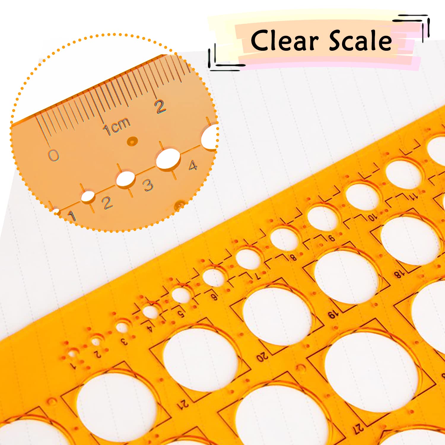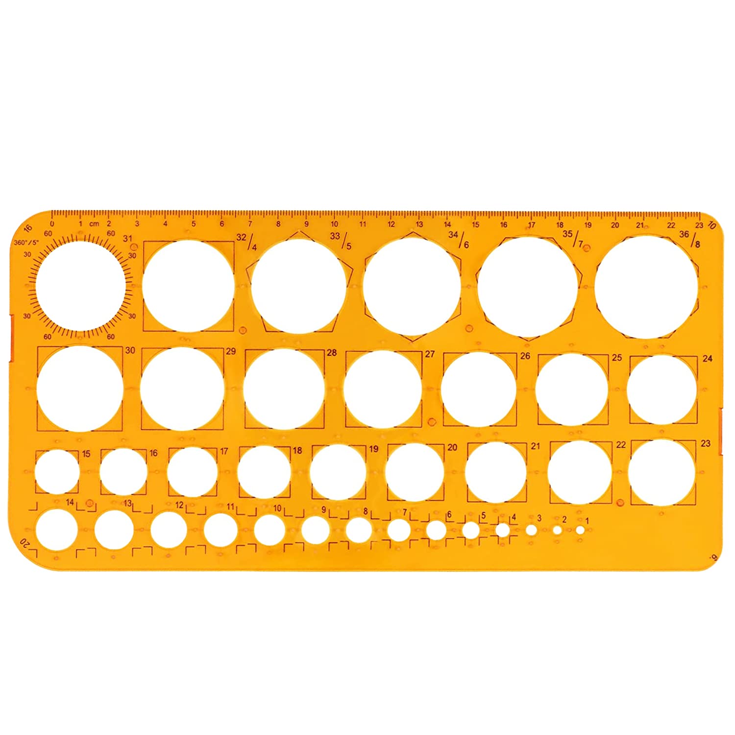 RIVIEVAL Kreisschablone Kreisschablone Kunststoffschablone Zeichenschablone mit 36 Kreisen Kreislineal zum Zeichnen Messen Gestalten (Orange)