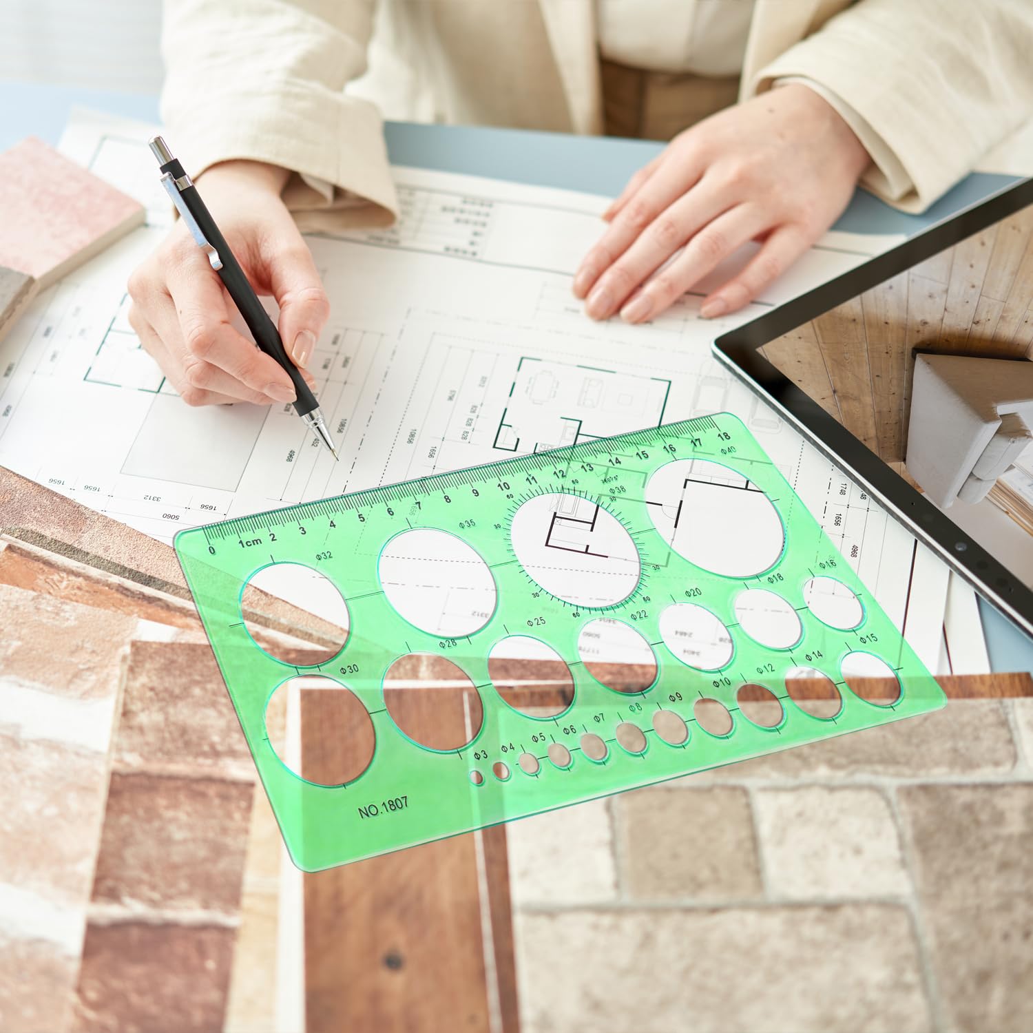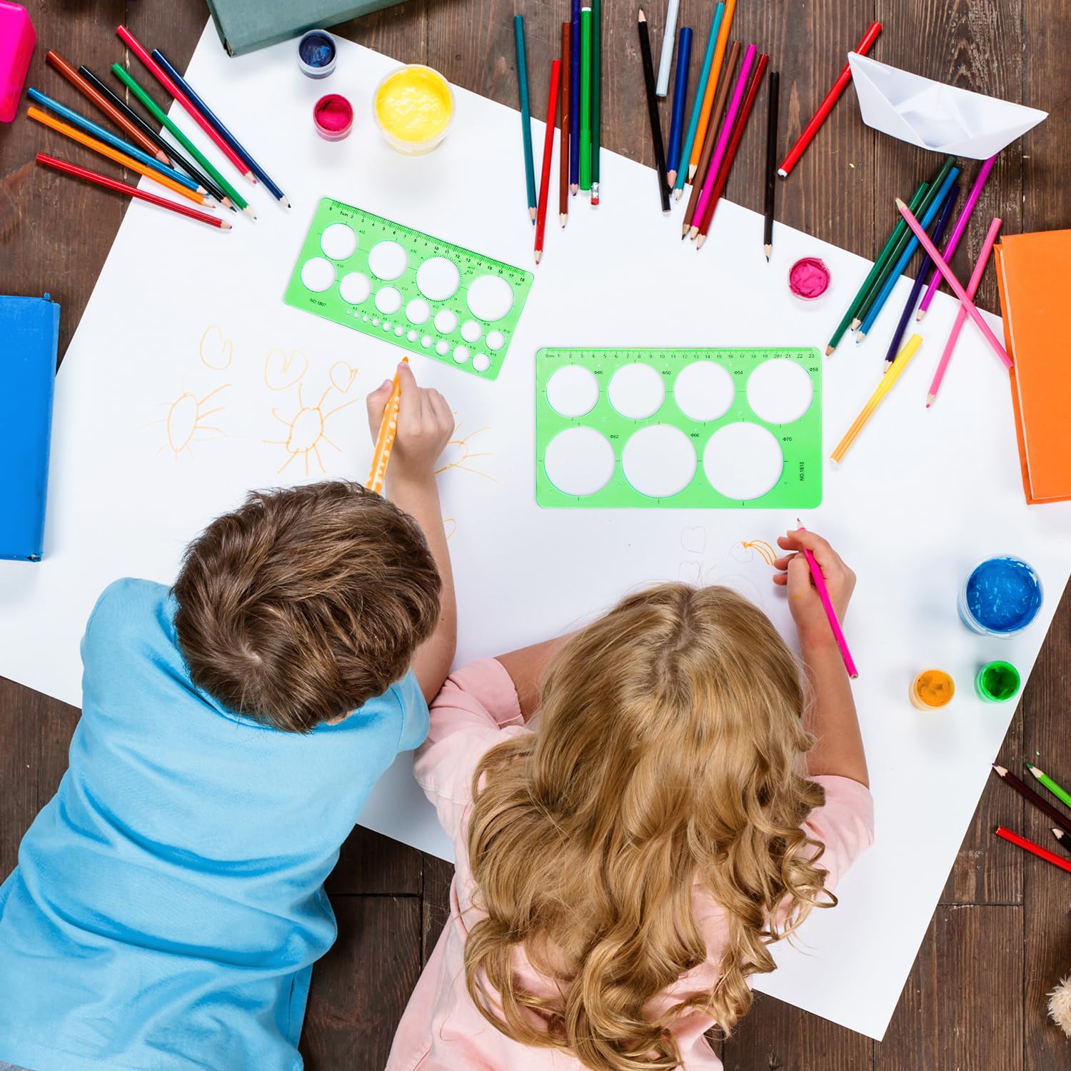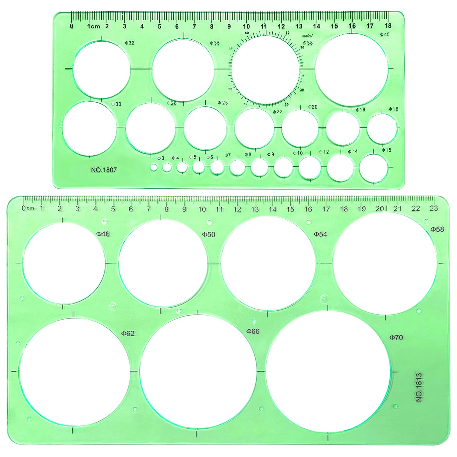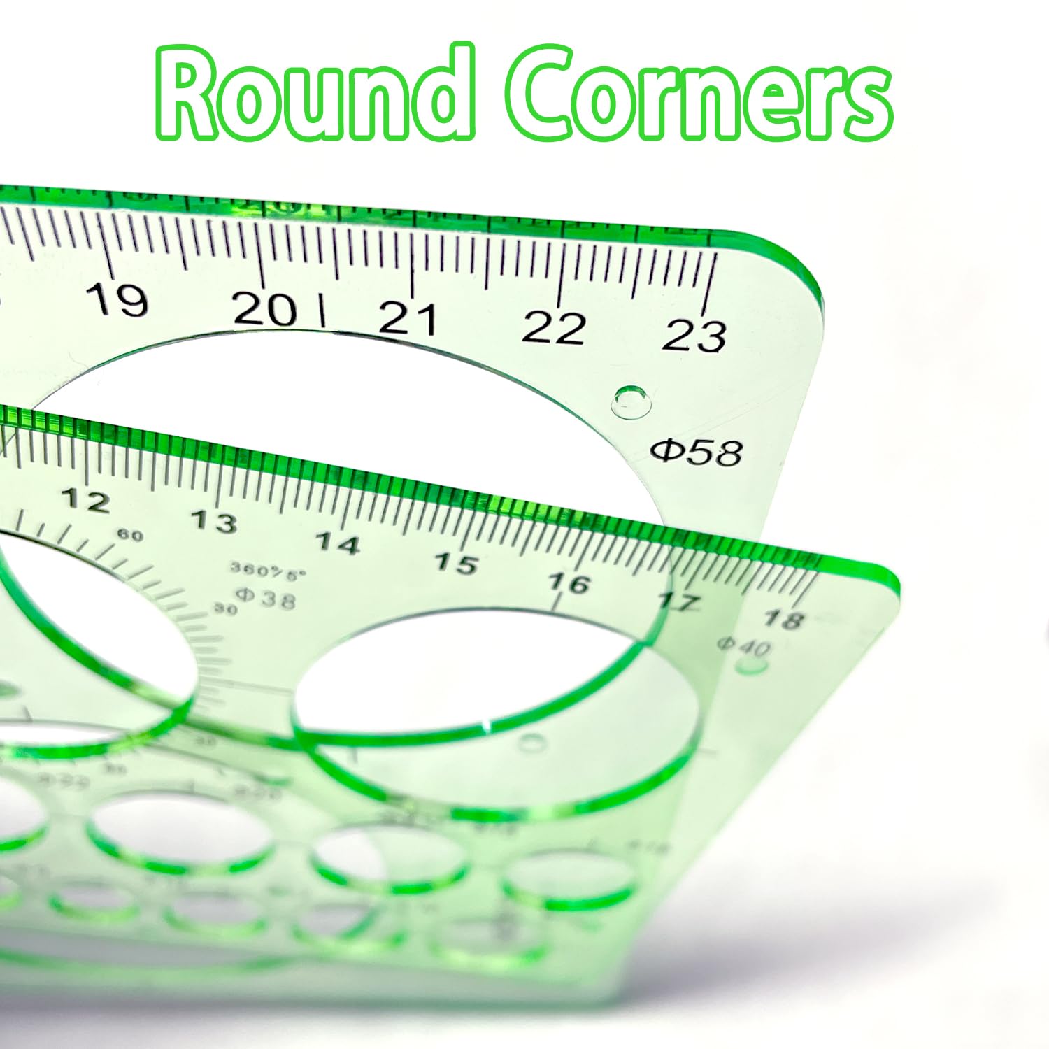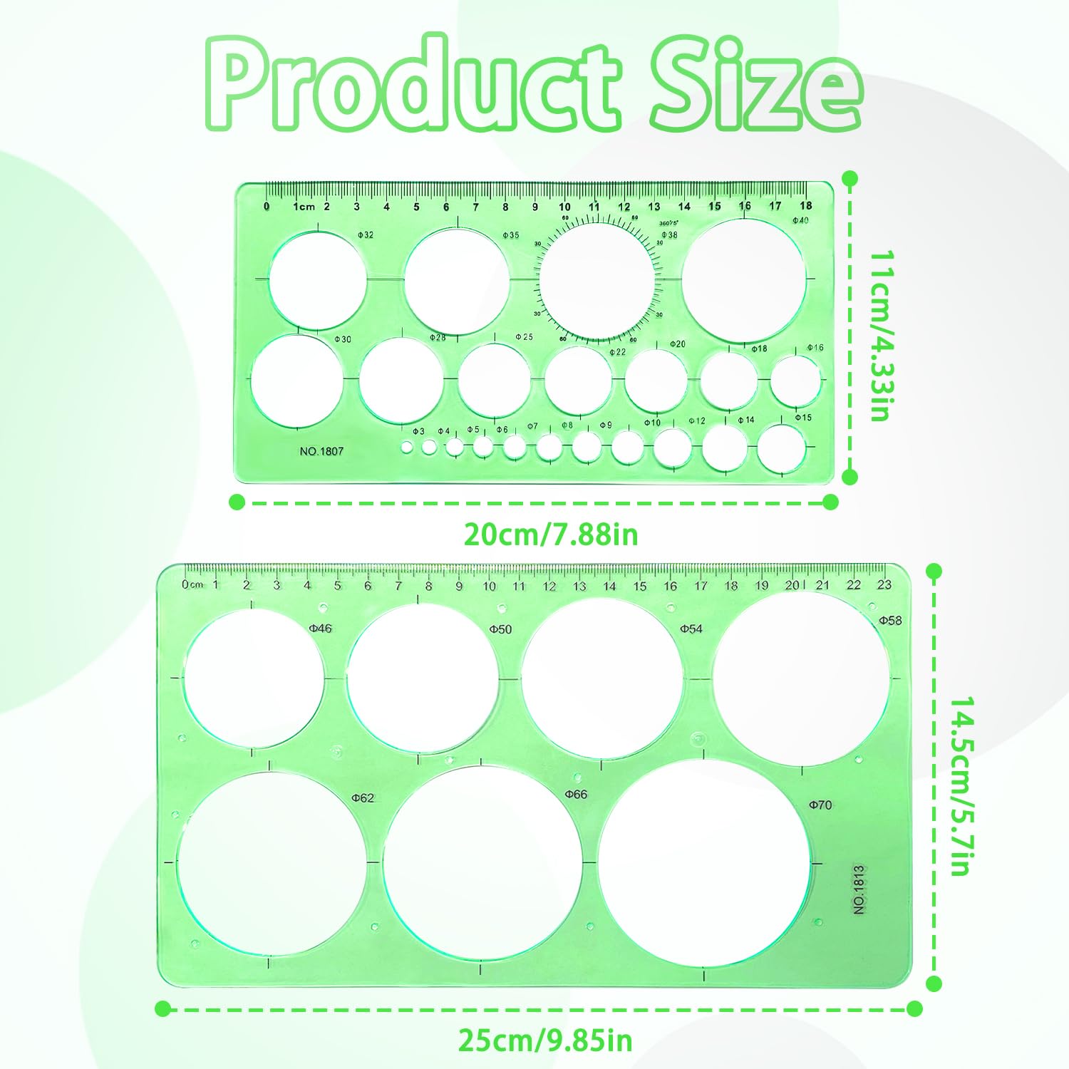 RIVIEVAL 2 Stück Kreisschablone, Lineal mit rundem Loch, Kreisschablonen, Plastikschablonen zum Zeichnen von Vorlagen, Messvorlagen, Lineale zum Zeichnen, Messen, Entwerfen (Grün)