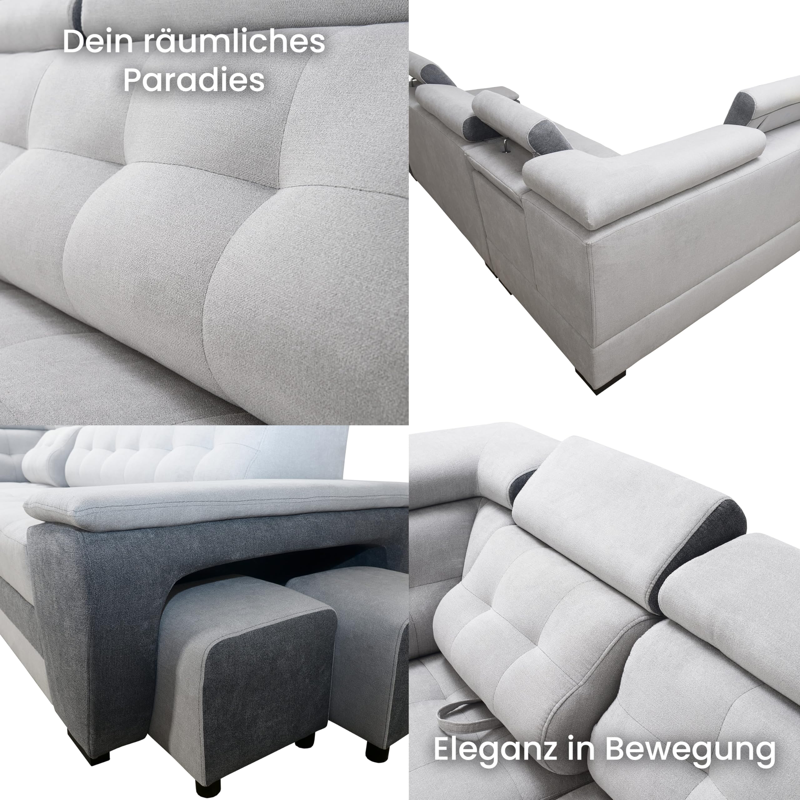 Robin Inspire Grand Ecksofa mit Schlaffunktion Bettkasten Kopfstützen Relaxfunktion 2 Hocker Sofa L-Form Schlafsofa Freistehende Eckcouch Schlafcouch Wohnzimmermöbel Wohnlandschaft Rechts Anthracite