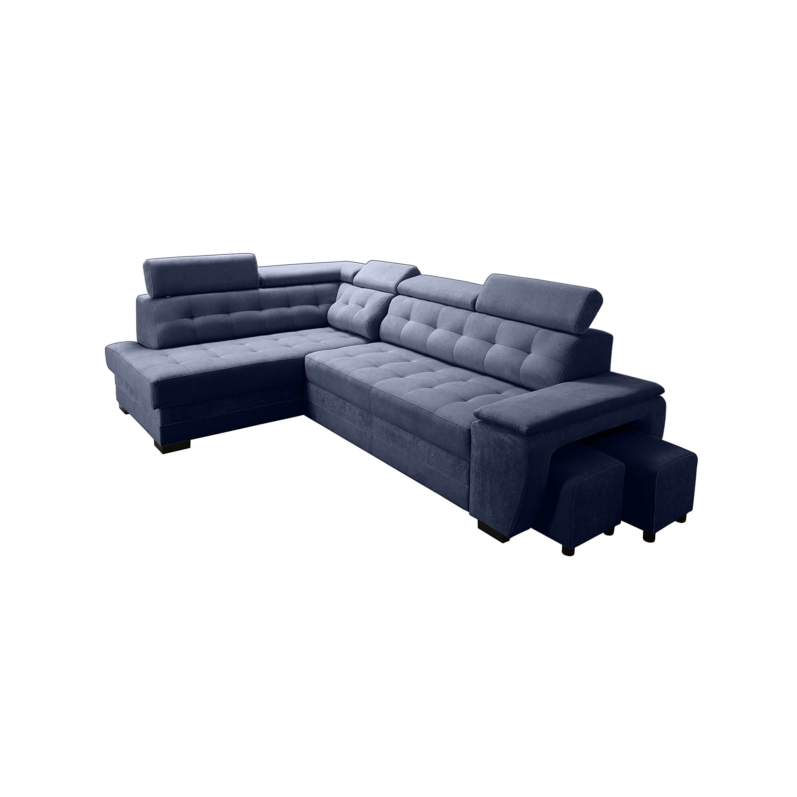 Robin Inspire Grand Ecksofa mit Schlaffunktion Bettkasten Kopfstützen Relaxfunktion 2 Hocker Sofa L-Form Schlafsofa Freistehende Eckcouch Schlafcouch Wohnzimmermöbel Wohnlandschaft Links Marineblau