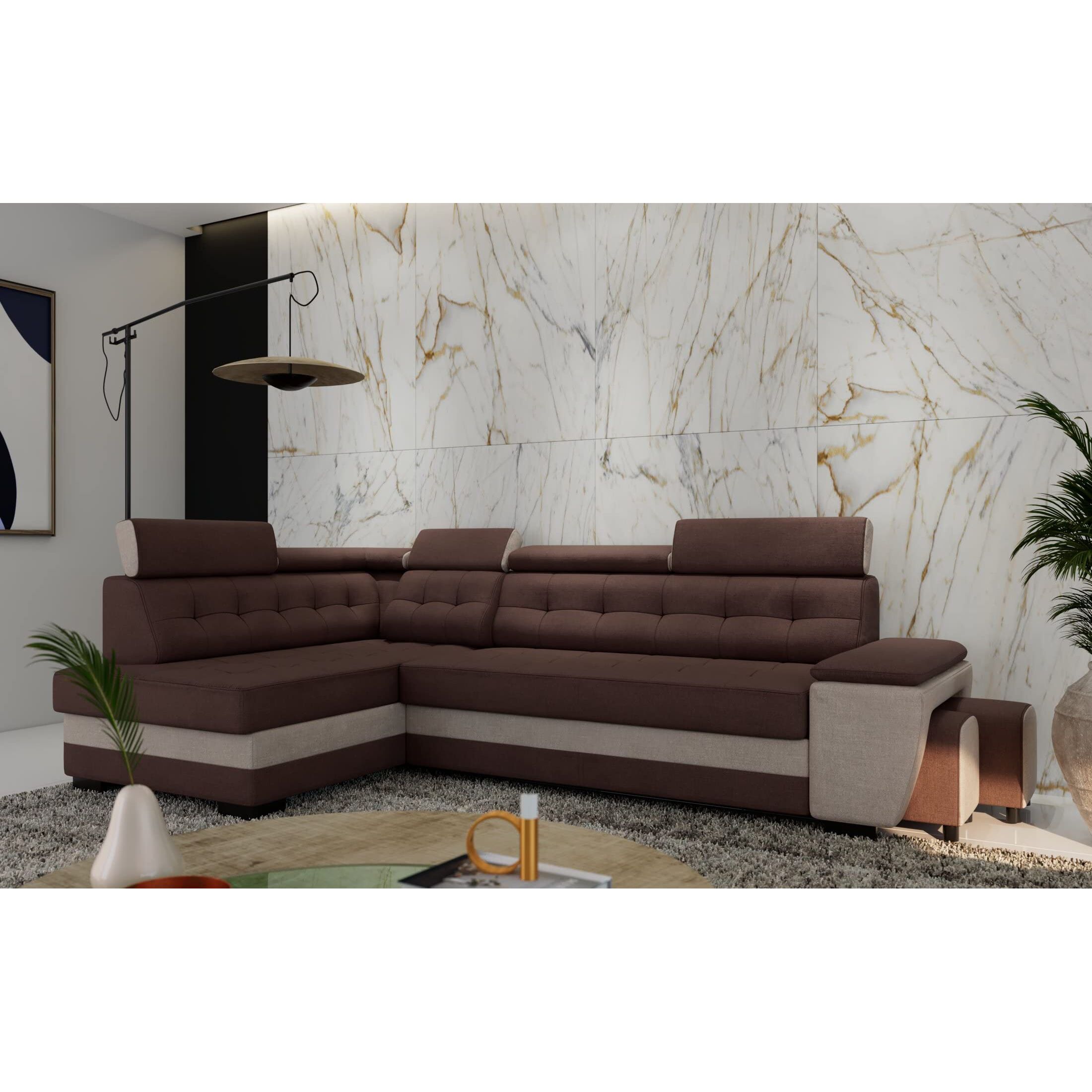 Robin Inspire Grand Ecksofa mit Schlaffunktion Bettkasten Kopfstützen Relaxfunktion 2 Hocker Sofa L-Form Schlafsofa Freistehende Eckcouch Schlafcouch Wohnzimmermöbel Wohnlandschaft Links Braun Creme