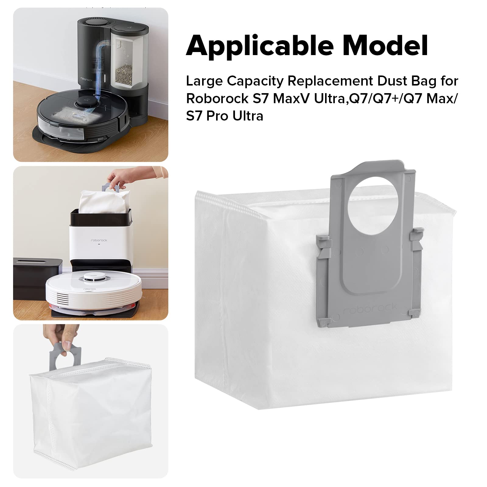 Roborock Original zubehör, Staubbeutel für Saugroboter Staubsauger der Serien S8+/S7 Max Ultra/S8 Pro Ultra/Q7 Max+/Q8 Max+/Q5 Pro+/Q5 Max+/Q7 L5+/Q10 S5+/Q10 X5+/S7 MaxV Ultra/S7 Pro Ultra, 3 Stück