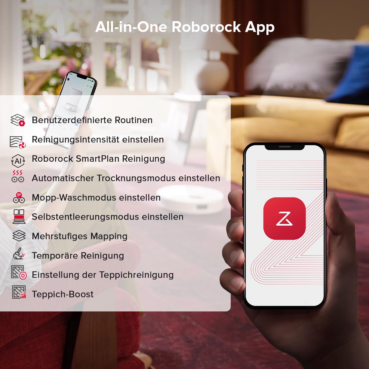 roborock Qrevo S5V Saugroboter mit Wischfunktion&Hebarem Wischmopp, 12.000Pa Saugkraft, Zero-Tangle System, Warmlufttrocknung, Intelligente Hindernisvermeidung, Multifunktions-Dockingstation (Weiss)
