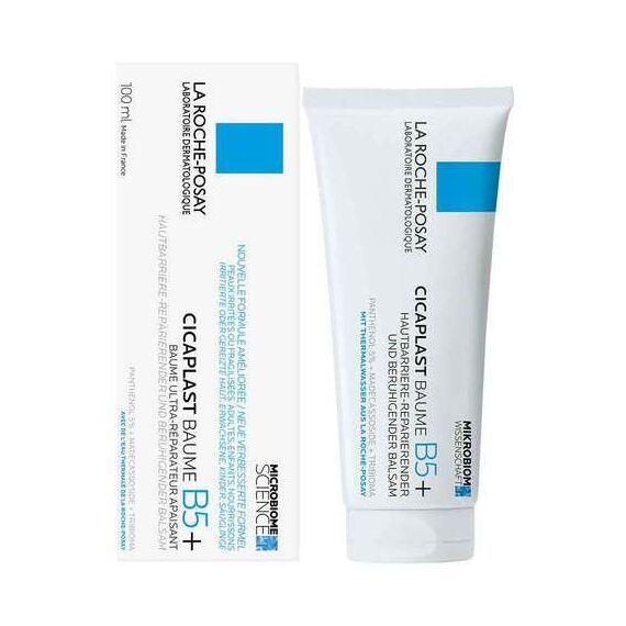 Anwendungsgebiet von La Roche Posay Cicaplast Baume B5+La Roche Posay Cicaplast Baume B5+ ist eine Reparierende Wundsalbe für geschädigte, irritierte Haut. Die Creme mildert Rötungen und Spannungsgefühle schnell, repariert die Haut und fördert die Heilung. Sie eignet sich für die Haut von Erwachsenen, Kindern und Babys. La Roche Posay Cicaplast Baume B5+ zeichnet sich durch eine besonders milde Formel aus und pflegt die empfindliche Haut von Körper, Gesicht und Lippen. Provitamin B5, auch als Dexpanthenol bezeichnet, wirkt regenerierend und beruhigend auf die Haut. Der Inhaltsstoff Madecassoside fördert die Zellerneuerung und Tribioma bringt das Mikrobiom empfindlicher Haut wieder ins Gleichgewicht.Wirkstoffe / Inhaltsstoffe / ZutatenInhaltsstoffe von La Roche Posay Cicaplast Baume B5+: