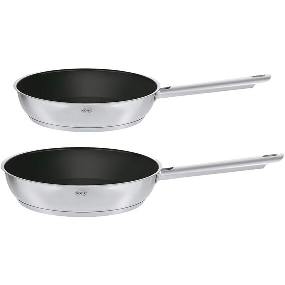RÖSLE ELEGANCE Bratpfannen-Set 2-tlg., Hochwertige Universalpfannen mit robuster Antihaftversieglung ProCera, 20 cm und 28 cm, Edelstahl 18/10, induktionsgeeignet