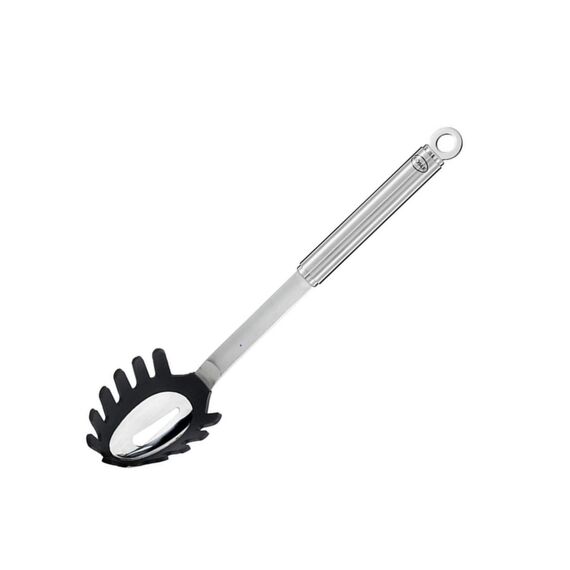• RÖSLE Spaghettiheber Silikon: Die handliche Spaghettikelle ist optimal um Teigwaren aus dem Topf zu heben und vorzulegen - durch den gezackten Rand und das Ablaufloch ist eine einfache Handhabung gegeben, egal ob für Spaghetti, Bandnudeln oder andere Teigwaren