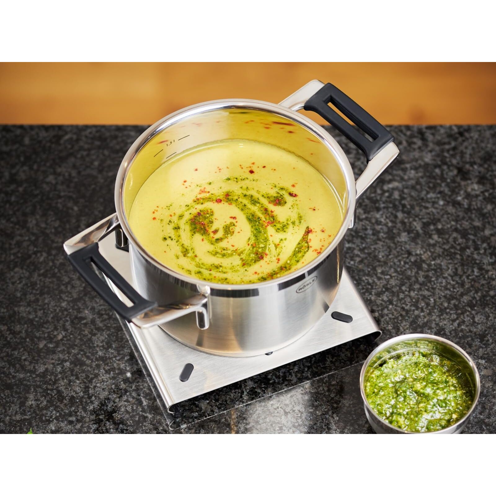 - Praktisch: Mit Innenskalierung kann auf das Abmessen von Wasser oder Milch mit einem Messbecher verzichtet werden - Glasdeckel mit Einsicht in das Topfinnere und rundumlaufendem Silikonabschluss für eine exakte, dichte Auflage auf den Kochtöpfen - aus Edelstahl 18/10 mit einem Spezialboden mit 5 mm Aluminiumkern hergestellt liegt eine optimale Wärmeleitung und -verteilung vor