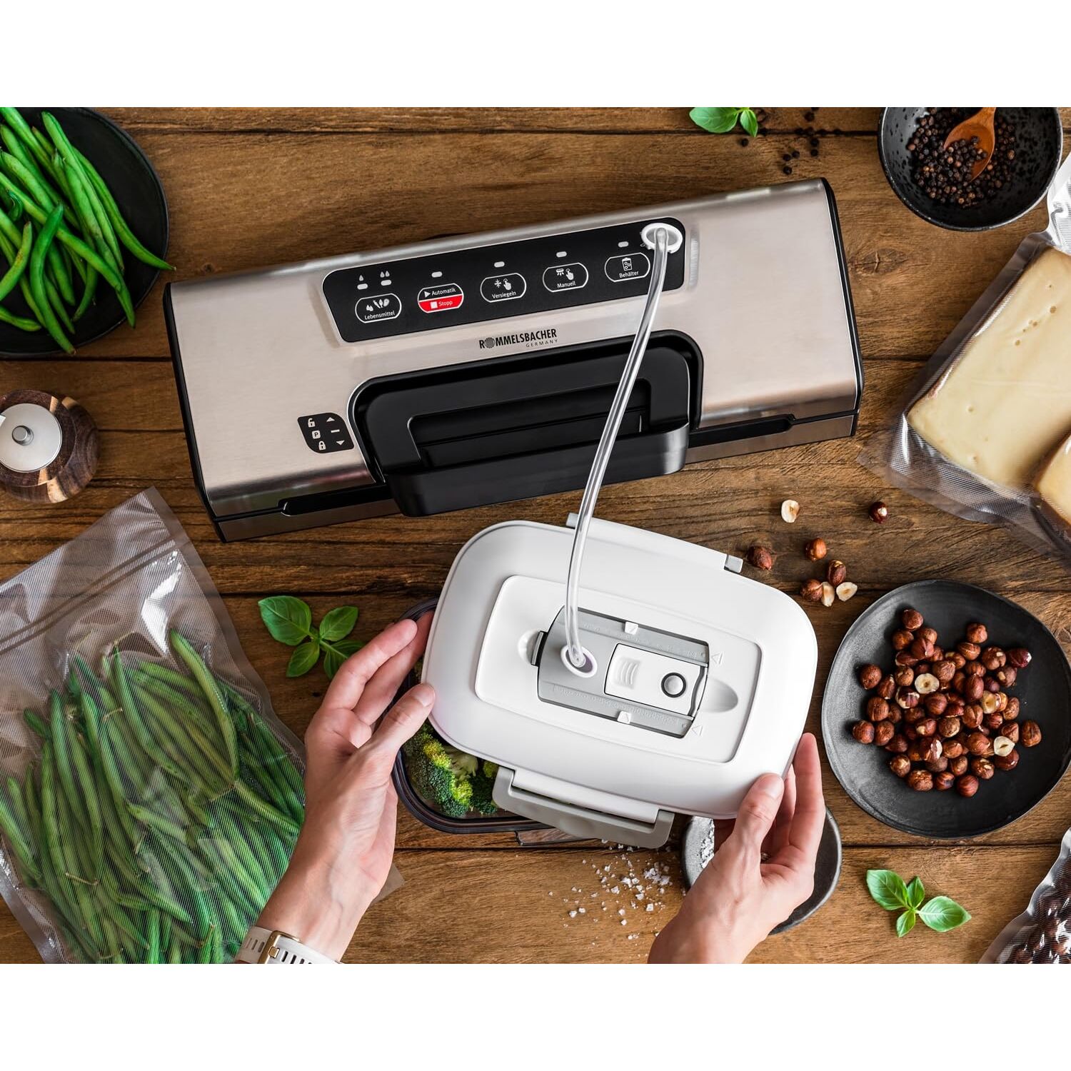ROMMELSBACHER Vakuumierer VAC 385, 12 Liter/Minute, Einhandbedienung, Rollenfach, stabile Versiegelungsnaht, Schlauchanschluss für Behälter, vollautomatisch & manuell absaugen & versiegeln, Edelstahl