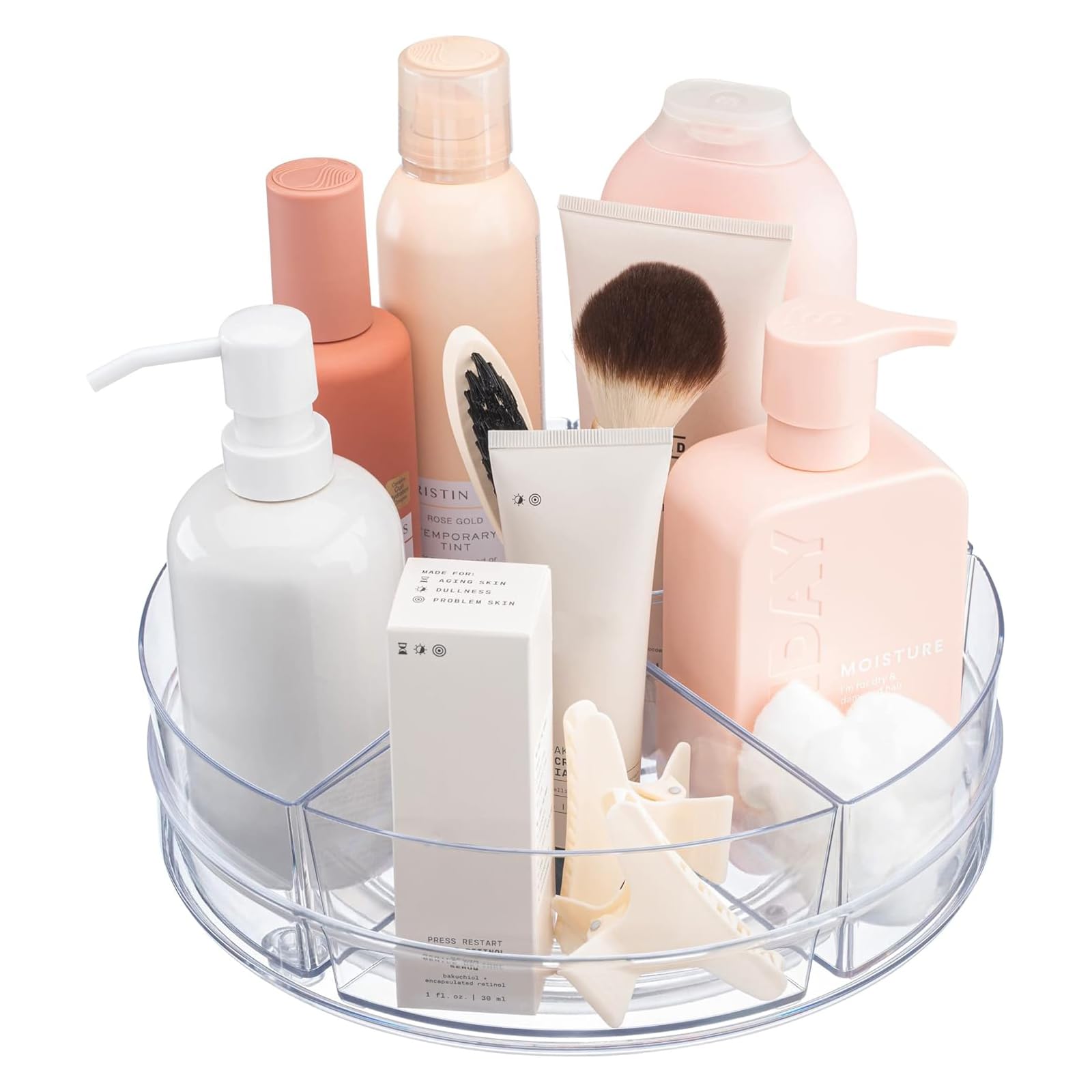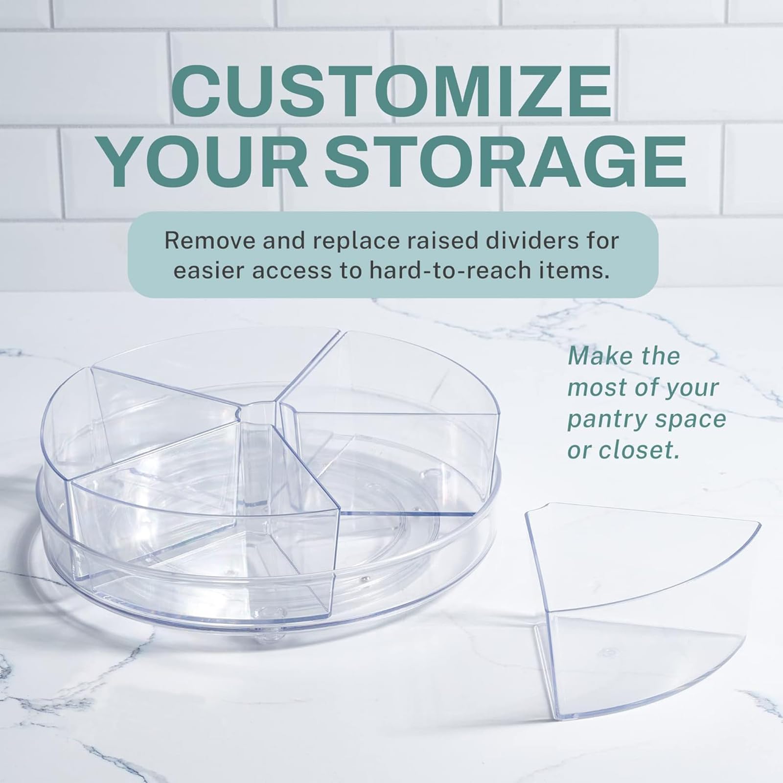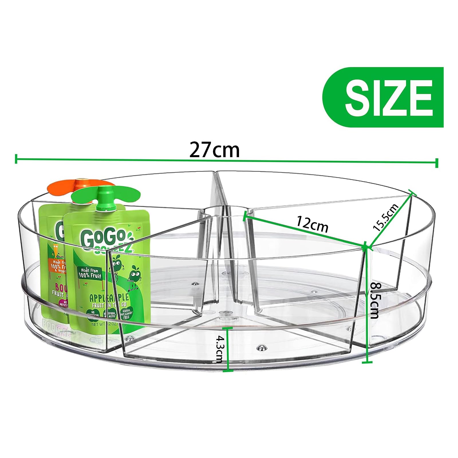 Roninkier Klarer Lazy Susan mit 5 herausnehmbaren Behältern Hauptmaterial: PET; Zubehör Material: PC, PP, rostfreier Stahl. Transparentes Material macht es möglich zu sehen, was drin ist. 2,6 Zoll hoher Rand verhindert, dass Gegenstände beim Drehen herunterfallen Starke Tragfähigkeit. Fügen Sie 5 herausnehmbare Fächer hinzu, um die Trennfunktion zu erhöhen.