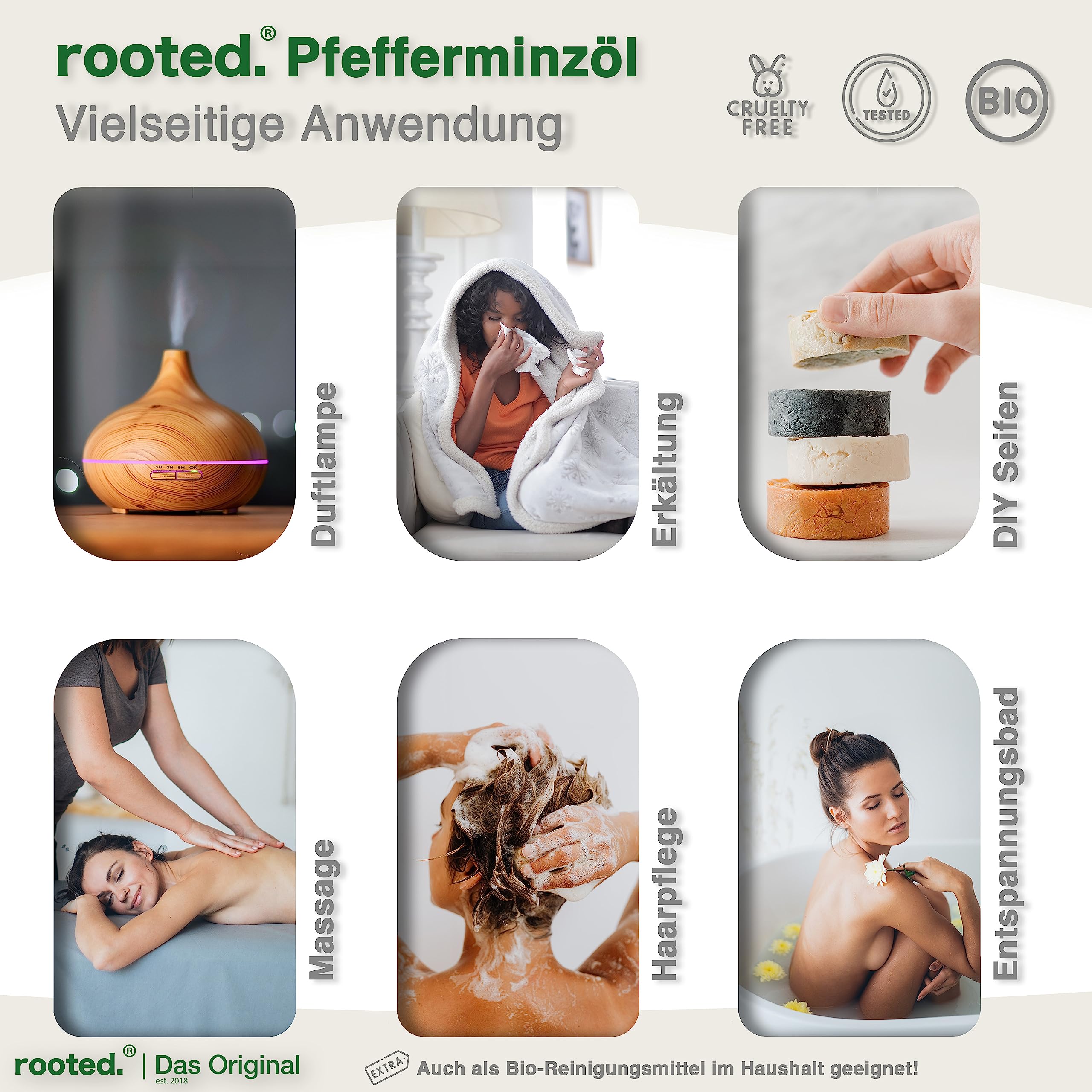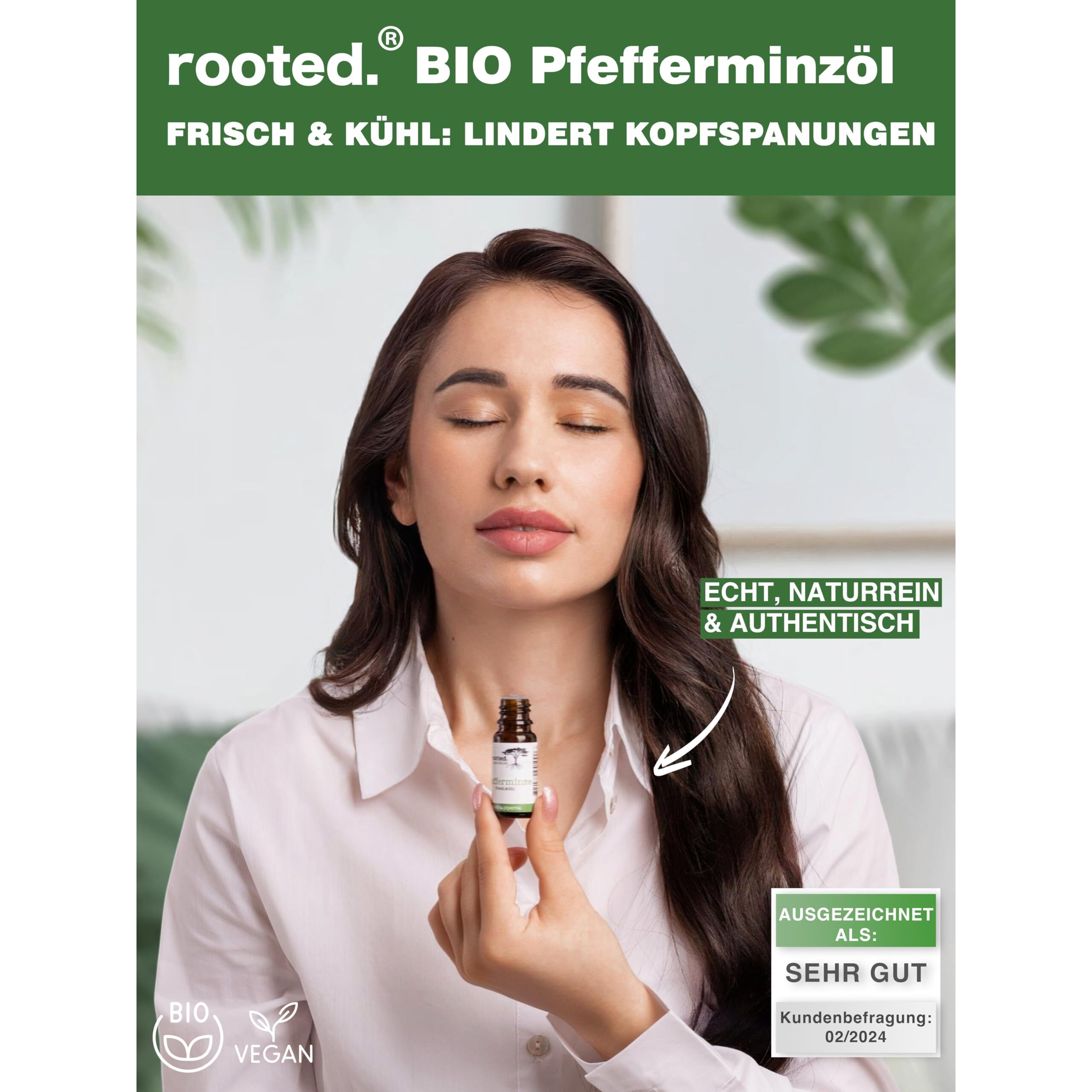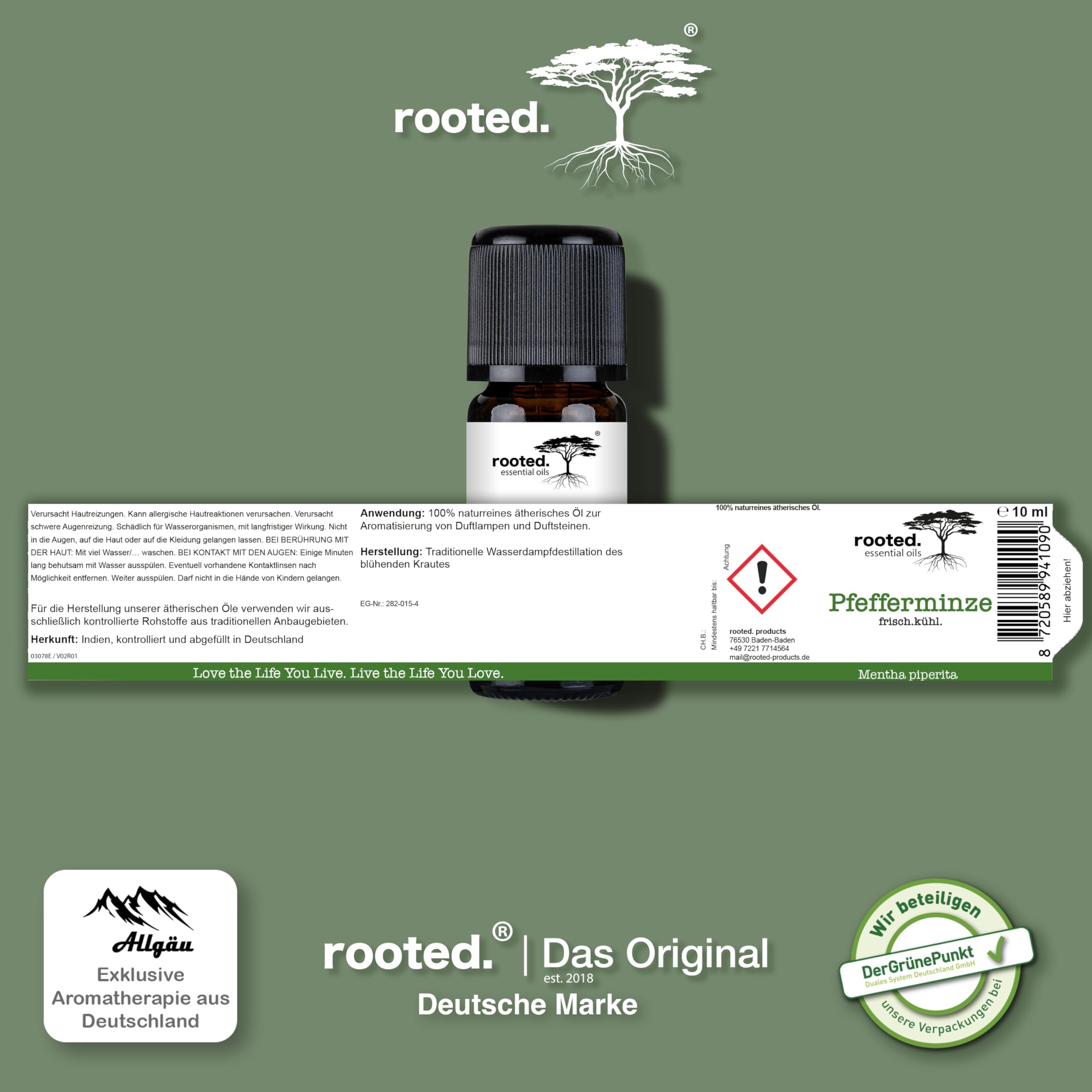 rooted.® BIO Pfefferminzöl 10ml [100% NATURREIN] - Echte Pfefferminze - Mentha piperita - Ätherisches Öl für Aromatherapie, Duftlampe, Diffusoren, Raumduft, Duftkerzen und -Seifen