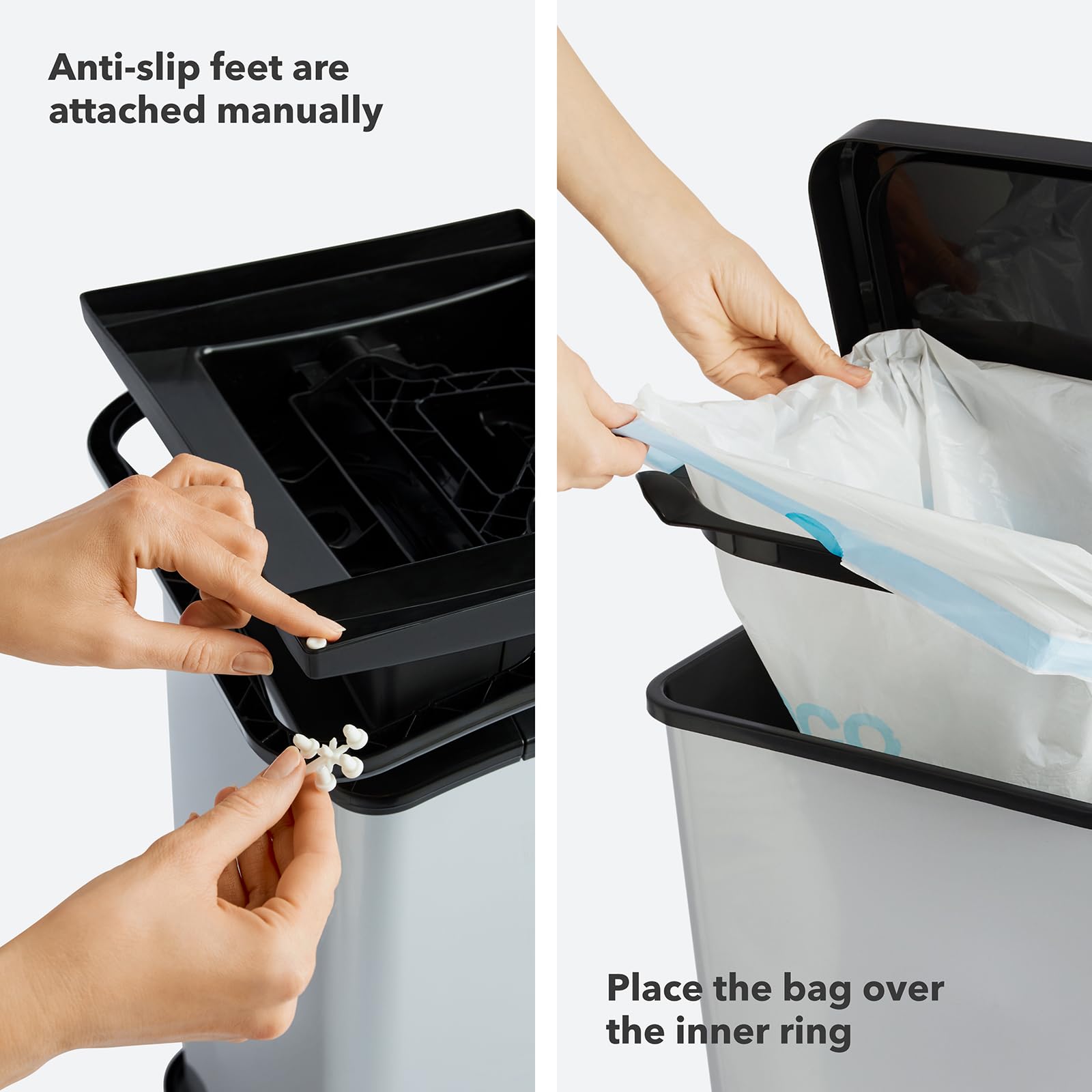 • Hygiene: Einfache Reinigung von Abfallbehälter und Deckel - keine austretenden Gerüche - dank hochwertigem Kunststoff entstehen keine Fingerabdrücke - BPA-freier Müllbehälter