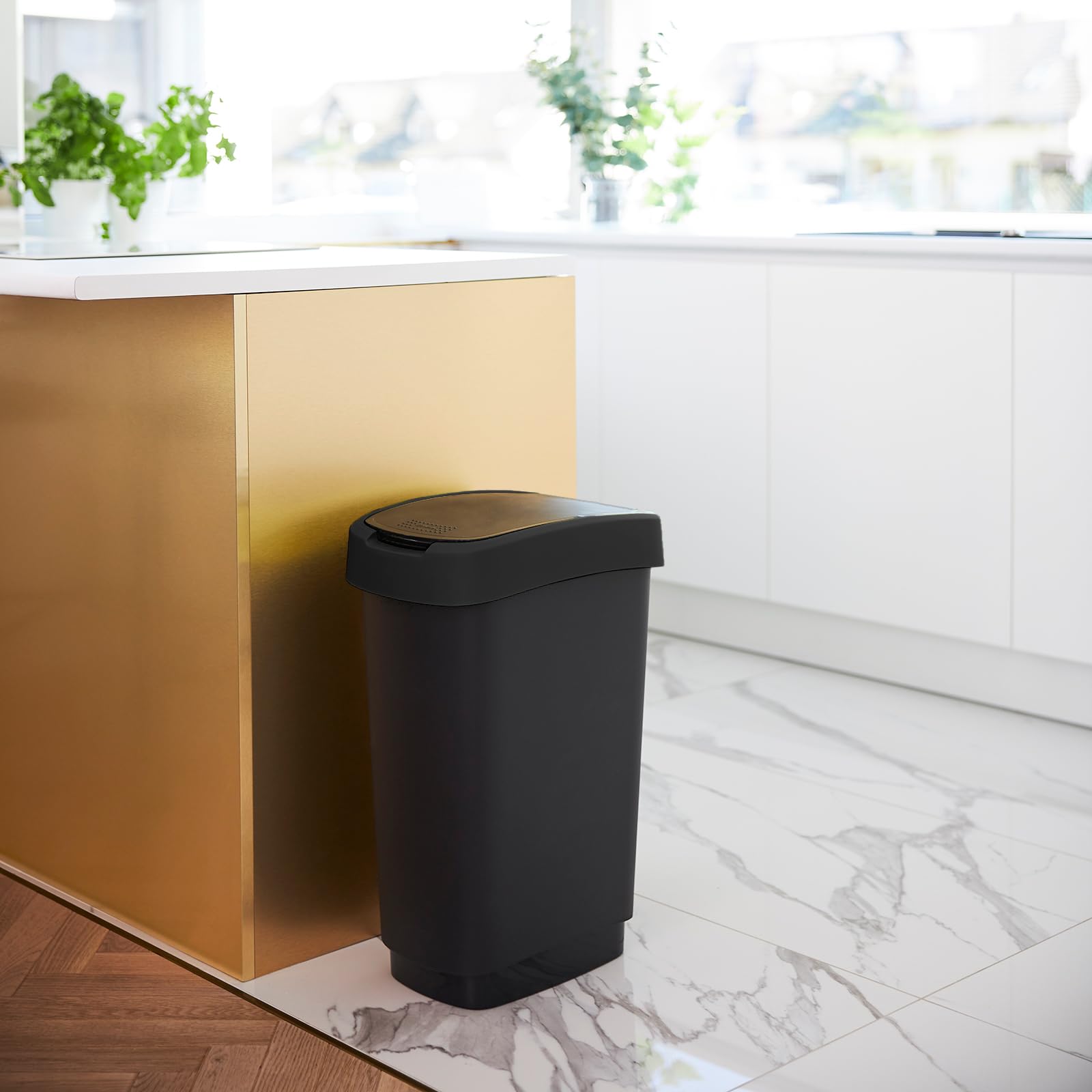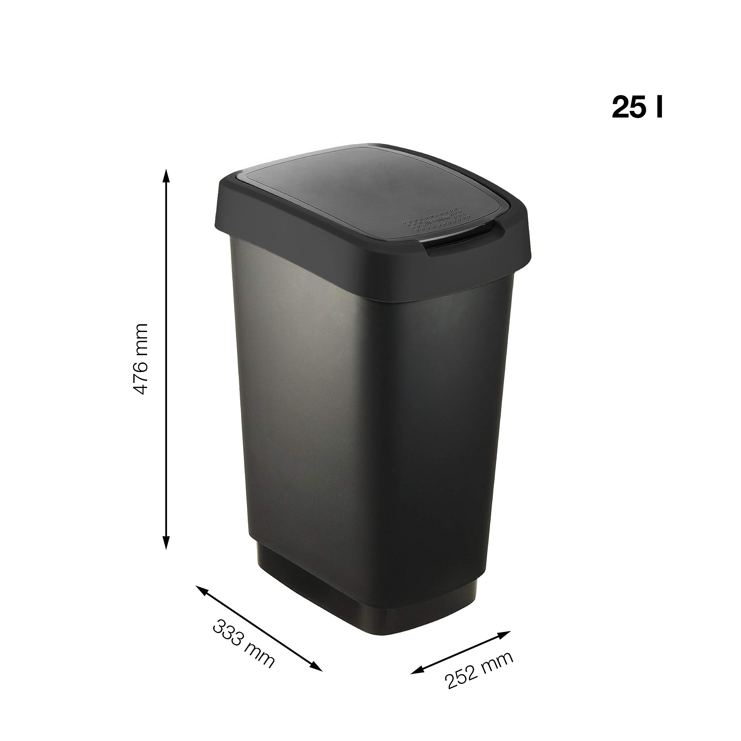 Rotho Salsa Mülleimer 25l mit Deckel, Kunststoff (PP) BPA-frei, schwarz recycelt, 25l (33.3 x 25.2 x 47.6 cm)