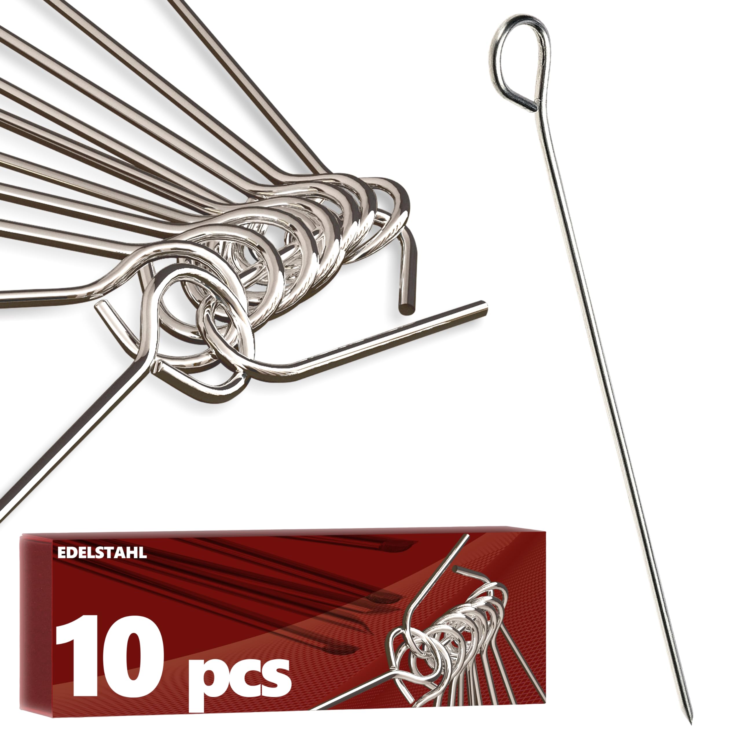 4smile Praktische Edelstahl-Rouladennadeln – verschiedene SetsDie Rouladennadeln Edelstahl sind die ideale Lösung für die mühelose Zubereitung klassischer Rinderrouladen. Diese praktischen Metall-Spiesse sind nicht nur wiederverwendbar, sondern verfügen auch über eine Grifföse und eine scharfe Spitze. Mit einer Länge von 10 cm sind sie ein funktionaler Ersatz für Rinderrouladen Klammern und Kohlrouladen Klammern. Ob als Fleischspiesse für Grill oder als Rouladen-Klammer Ersatz, diese vielseitigen Helfer überzeugen in jeder Hinsicht.Dank ihrer handlichen Grifföse lassen sich die Spiesse für Rouladen gut greifen und ermöglichen ein einfaches sowie bequemes Handling. Die Metall-Spiesse bieten eine hohe Funktionalität, die das Kochen von Hausmannskost zu einem entspannten Vergnügen macht. Egal ob als Rinderrouladen Klammern oder für Kohlrouladen, unsere Ersatz Rouladenklammern Edelstahl rostfrei sind die perfekte Wahl.Darüber hinaus sind die Spiesse Rouladen vielseitig einsetzbar. Sie eignen sich nicht nur Rouladen Klemme, sondern können auch kreativ als Grill- oder Cocktailspiesse sowie für Fingerfood auf BBQ-Partys verwendet werden. Die langlebige, rostfreie Edelstahl-Qualität dieser Spiesse Metall sorgt für eine nachhaltige Nutzung. Hitzebeständig und pflegeleicht.Erhältlich in verschiedenen Set-Grössen wie 30er, 50er, 60er oder 100er Sets! Rouladennadeln Edelstahl als Ersatz Klammern für Rouladen sind ein Must-Have für jeden Koch.