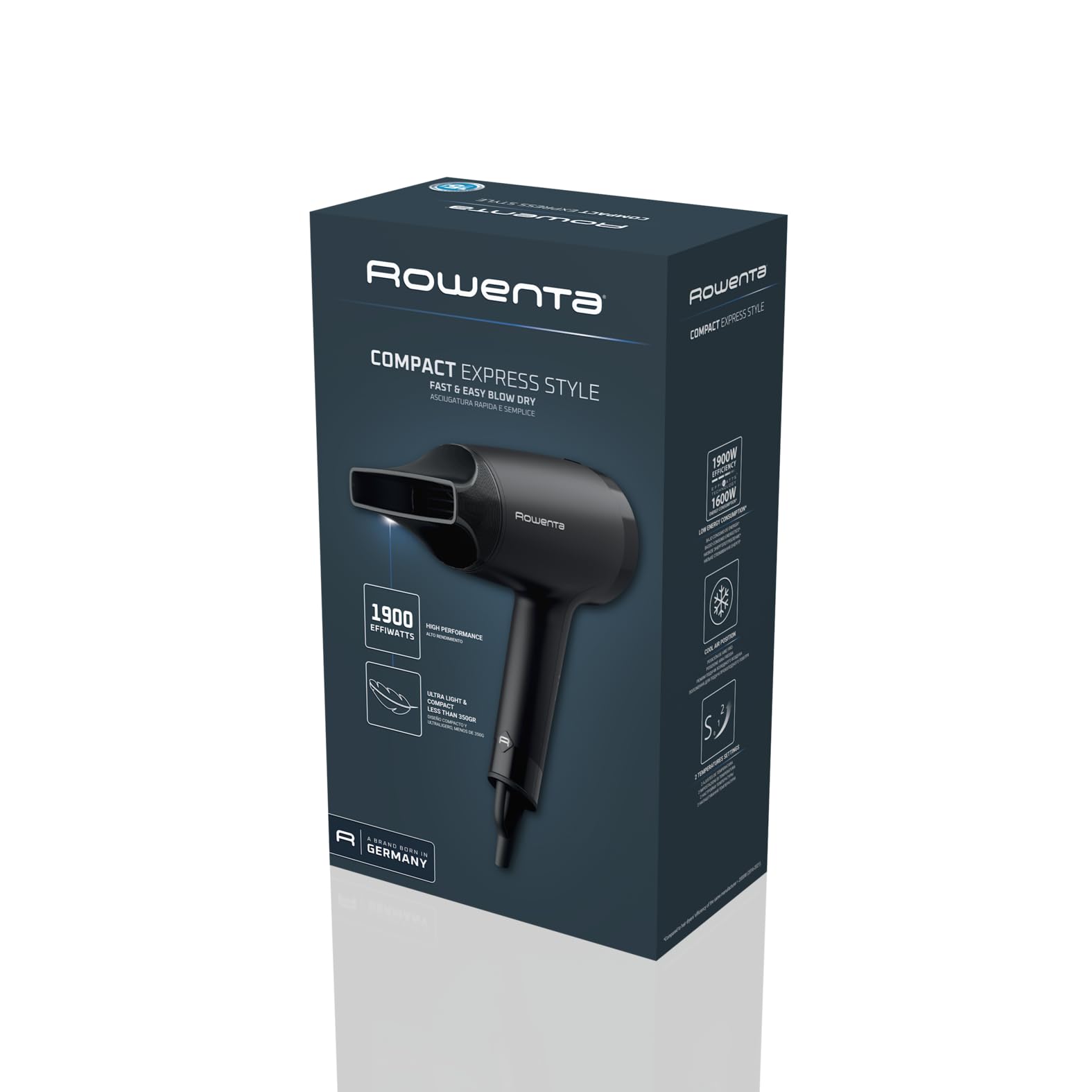 Rowenta CV1801 Express Style Haartrockner, 1900 Effiwatt, 2 Einstellungen, leistungsstark, Kaltlufttaste, 1,8 m Netzkabel, kompaktes und ultraleichtes Design, Schwarz