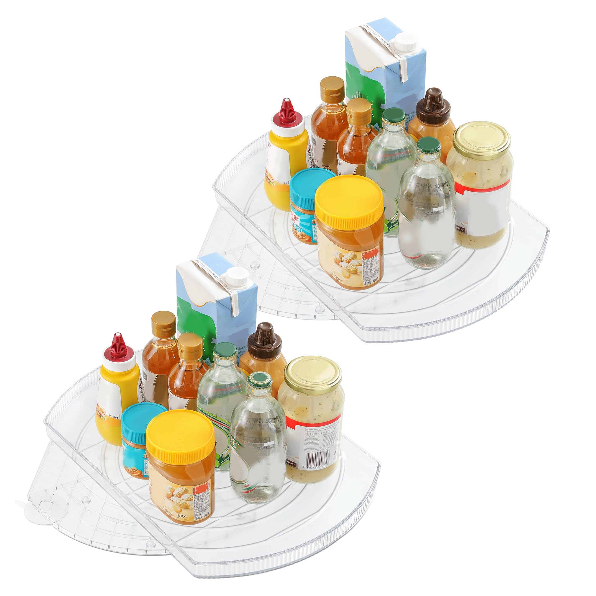 ROWNYEON Drehteller Kühlschrank Organizer Rechteckig,360° Drehplatte Kühlschrank,Lazy Susan Drehteller Fridge Organizer Drehbar,Gewürzregal Drehbar für Küchen Organizer,2 Pack