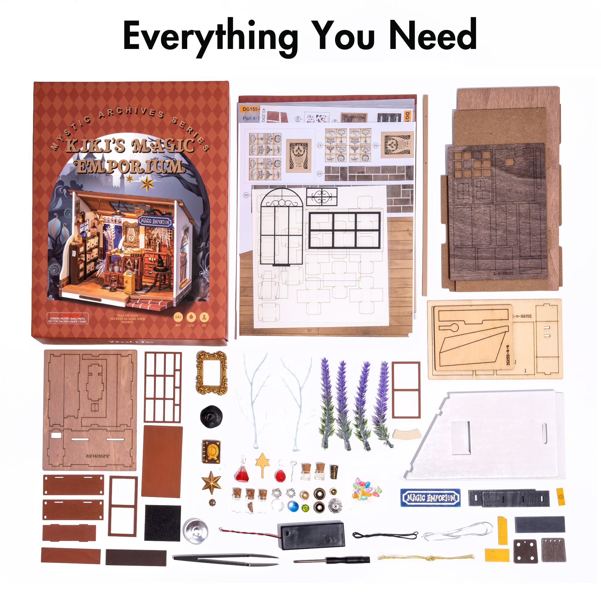 RoWood DIY Miniatur Haus Puppenhaus mit Licht, DIY Mini Holz Haus Modell Set, Bastelset Geburtstag Geschenke für Erwachsene Frauen Mädchen - Kikis Magisches Emporium
