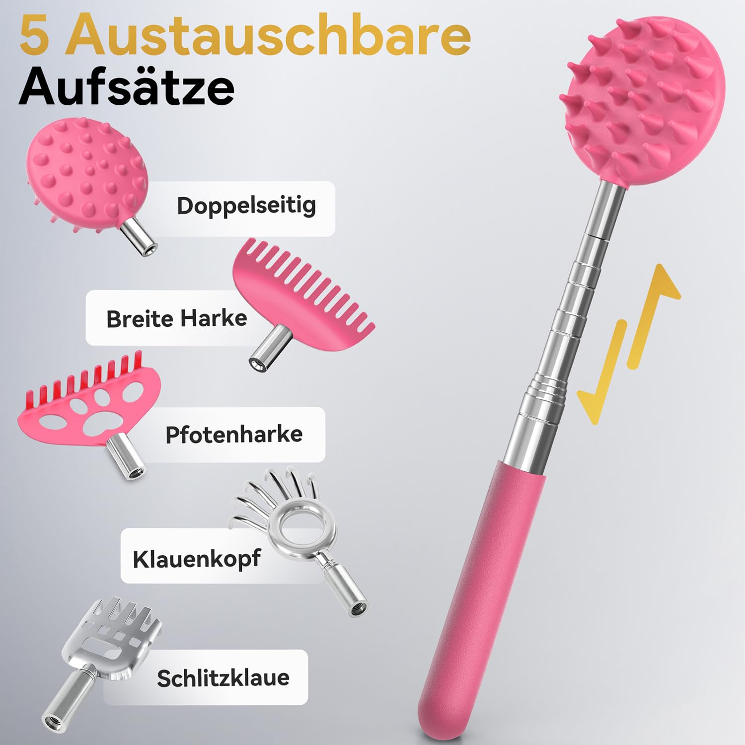 - Ausziehbarer Rückenkratzer mit fünf abnehmbaren Kratzköpfen