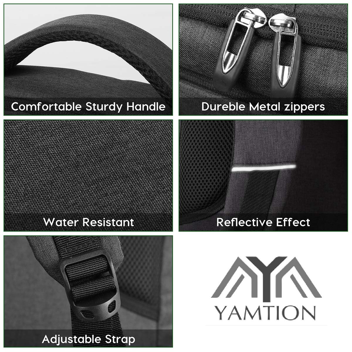 WARUM DEN YAMTION C25-RUCKSACK WÄHLEN? - Hergestellt aus hochwertigem, reissfestem und wasserabweisendem Polyestergewebe mit hochdichtem Nylonfutter, speziell behandelt für Wasserbeständigkeit - Diebstahlschutztasche und sichere Schnalle schützen Ihre Wertsachen und bieten einen privaten Raum. -Grosser Laptop-Rucksack ist leicht zu halten 17 Zoll, 15,6 Zoll Laptop-Rucksack. -Starke Metallreissverschlüsse sorgen für eine dauerhafte Nutzung. -Eine Gepäckhülle ermöglicht das Anbringen des Rucksacks am Gepäck / Koffer. Schieben Sie den Rucksack zum leichteren Transport über das aufrechte Griffrohr des Gepäcks. -Externer USB-Anschluss mit integriertem Ladekabel zum bequemen Aufladen Ihres Telefons an jedem Ort. Beachten Sie jedoch, dass der Rucksack selbst keinen Strom liefert und Sie eine Powerbank selbst einbauen müssen. -15+ Taschen bieten Platz für Ihren Laptop (17 Zoll oder kleiner), Notebook, Kleidung, iPad und so weiter. Die zwei Aussentaschen für Regenschirm und Flasche erleichtern das Auffinden bei Bedarf. In der Diebstahlschutztasche befinden sich Ihre Wertsachen wie Brieftasche und Schlüssel. WAS IST DIE SPEZIFIKATION DIESES YAMTION C25-RUCKSACKS? Abmessungen: 18,5 x 13 x 8 Zoll Gewicht: 0,7 kg Farbe: Schwarzweiss Stil: Laptop-Rucksack, Reiserucksack, Business-Rucksack, Schulrucksack, Outdoor-Rucksack