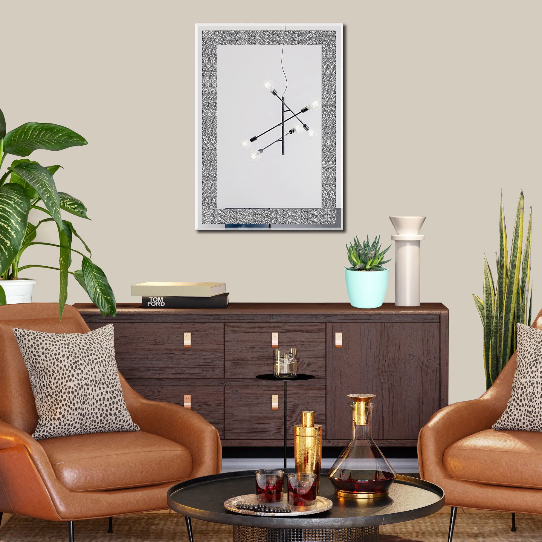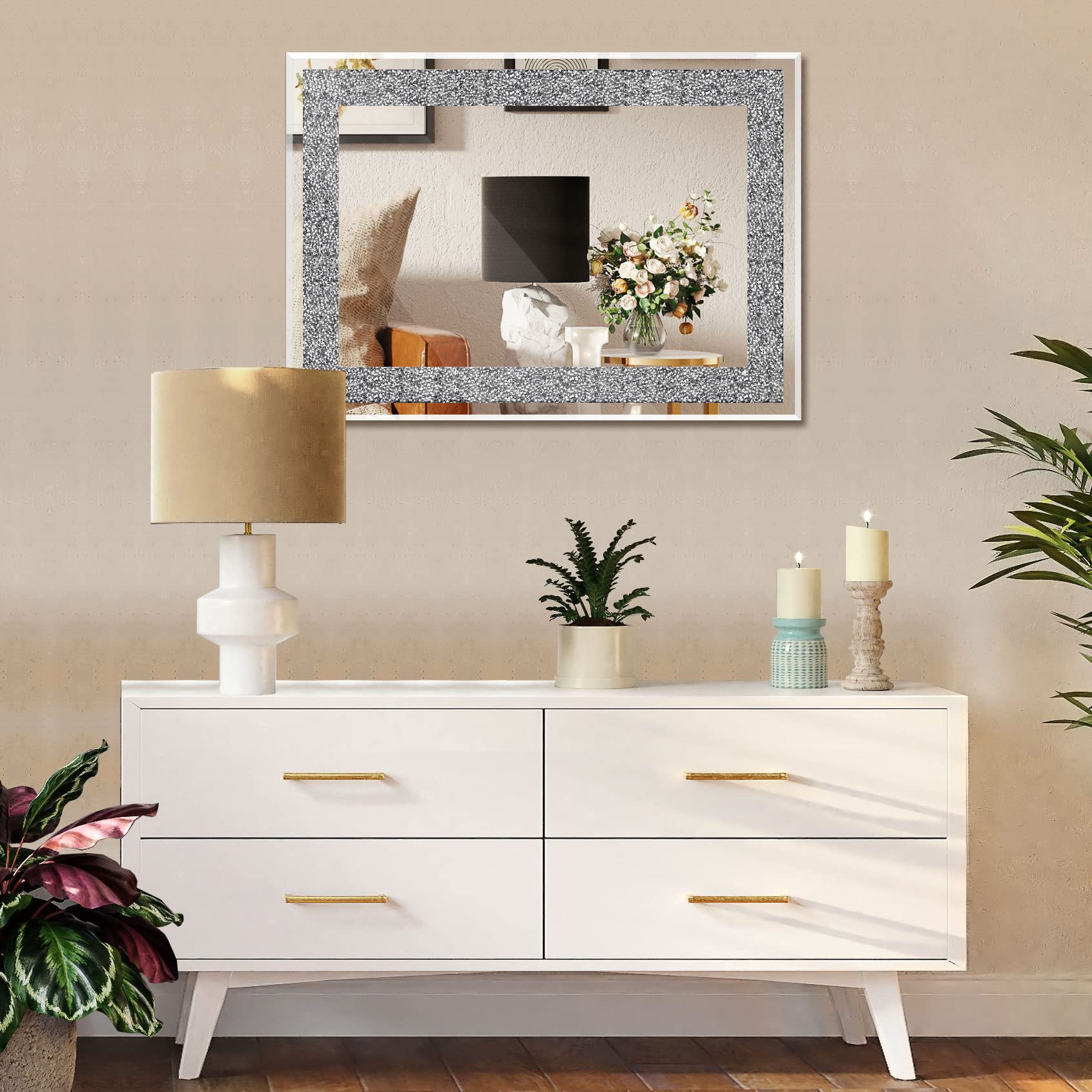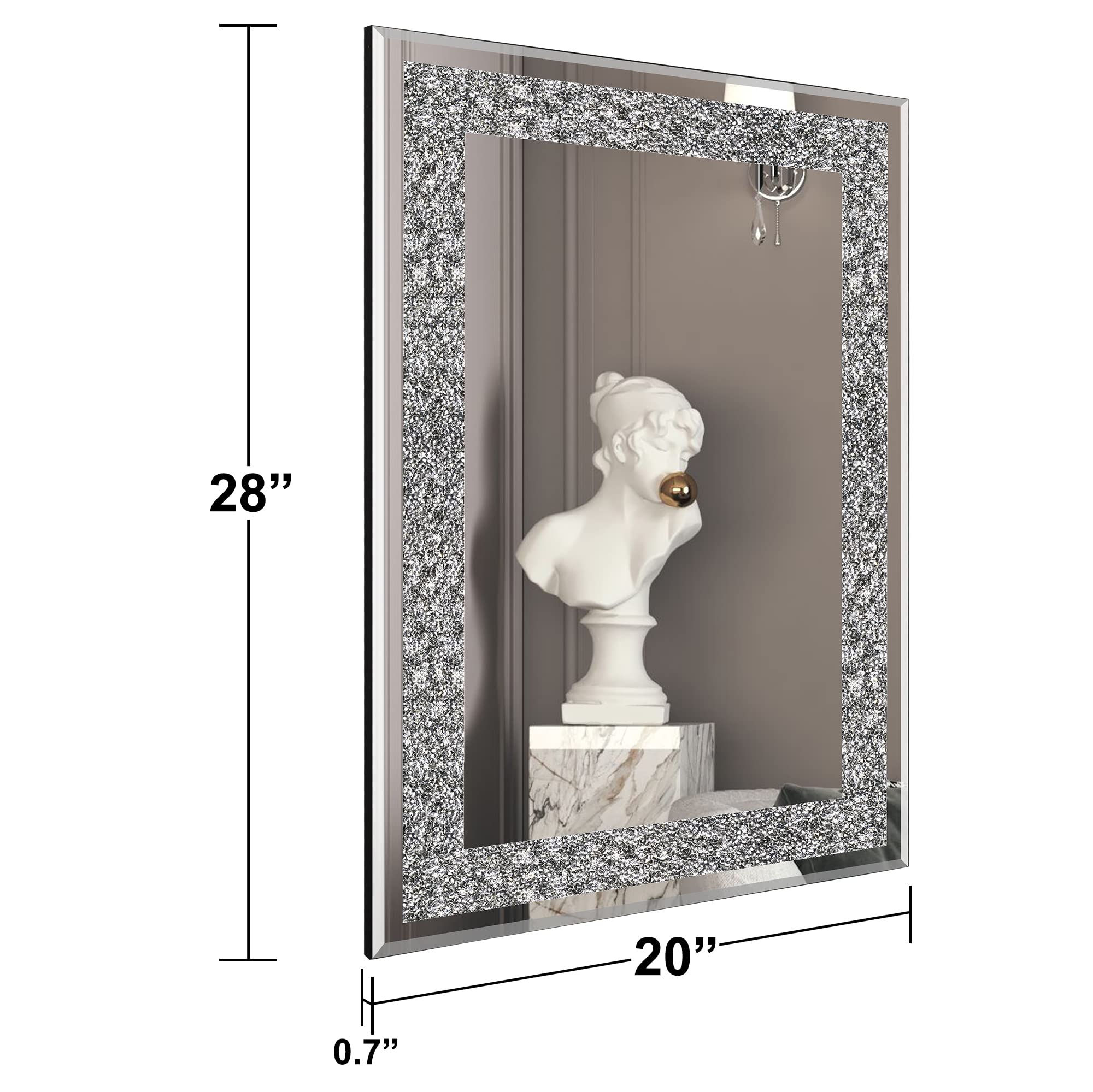 Ruomeng Wandspiegel, rechteckig, Kristall-Diamant-Spiegel für Heimdekoration, Akzentspiegel für Badezimmer, Eingangsbereich und Schlafzimmer, 50,8 x 71,1 cm