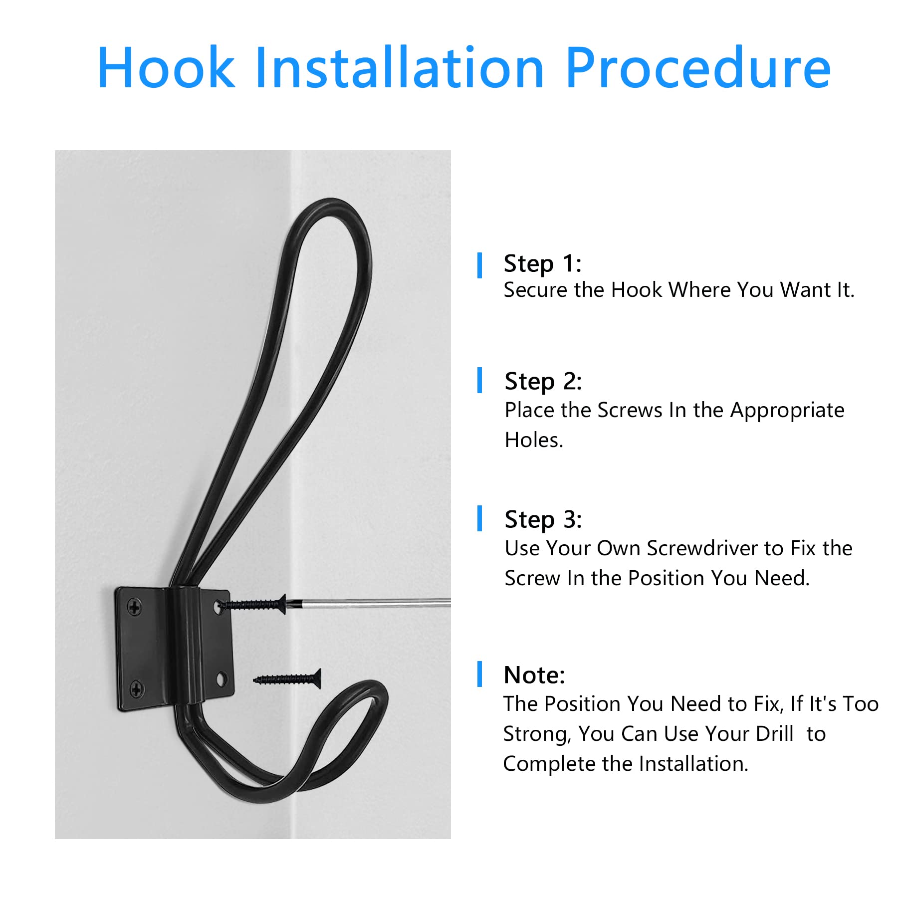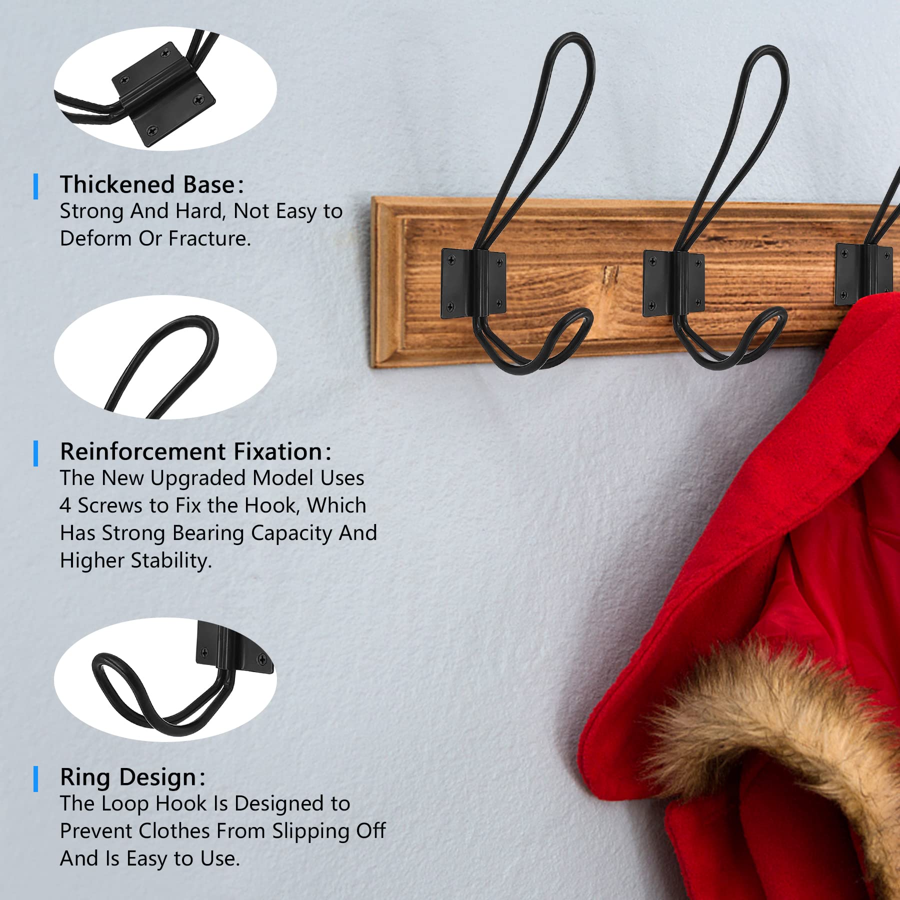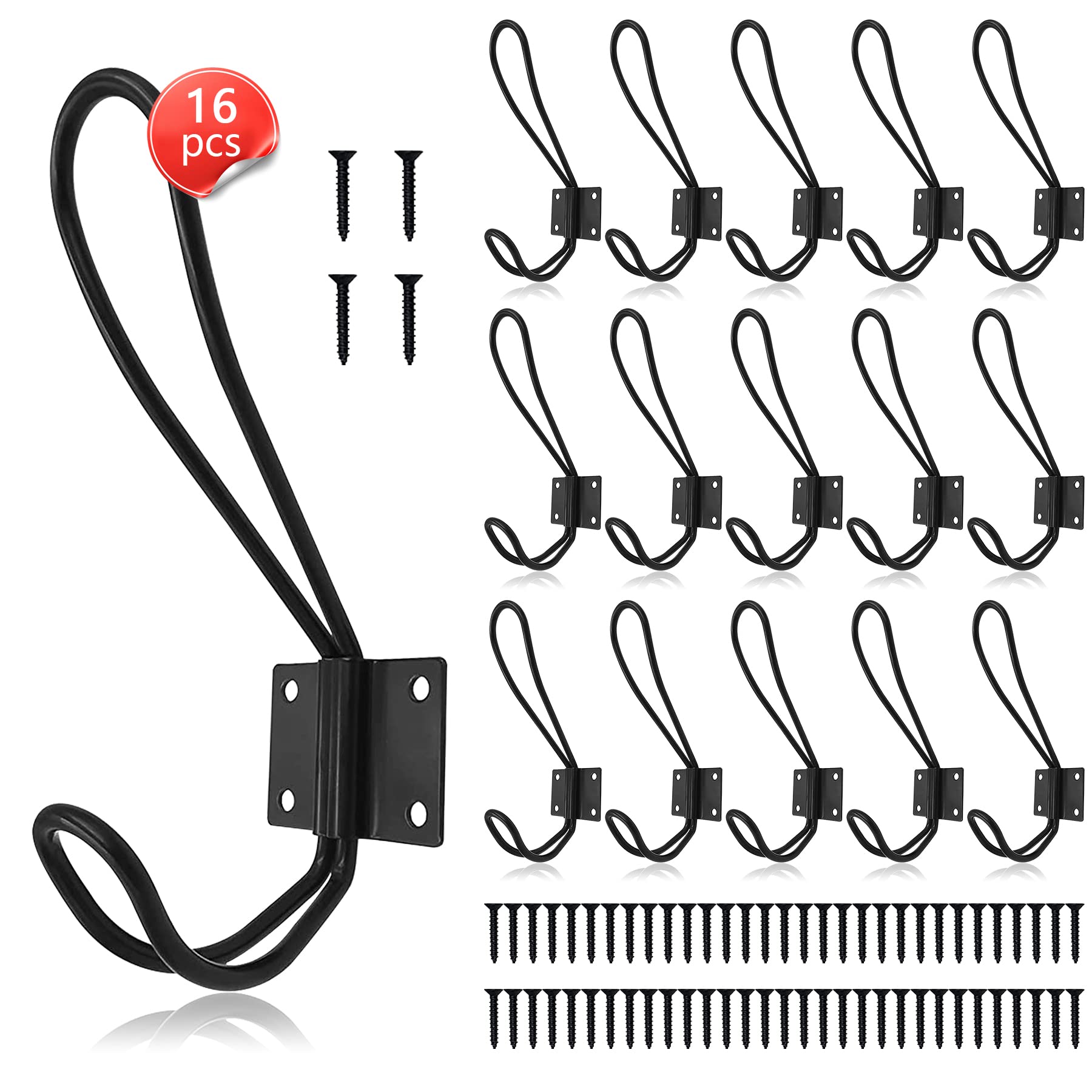 Hajoyful Rustikale Eingangshaken, 16 Stück, Bauernhaus-Haken mit Metallschrauben, Schwarz, Wandmontage, Doppelhaken, Kleiderhaken