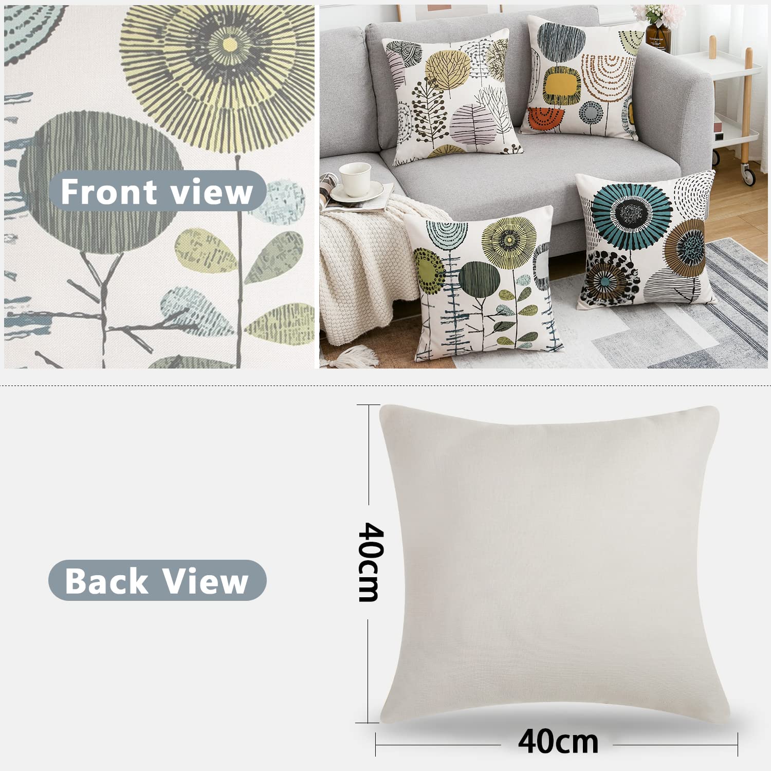 4er Set Kissenbezüge 40x40cm Blumen Dekokissen Kissen Beige Abstrakte Vintage Dekoration Sofakissen Quadrat Leinen Dekorative Kissenhülle Zierkissenbezüge für Sofa Schlafzimmer Wohnzimmer Auto