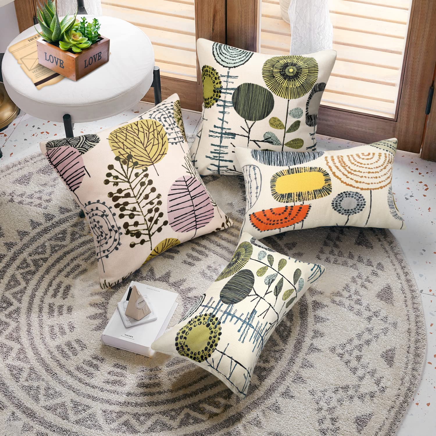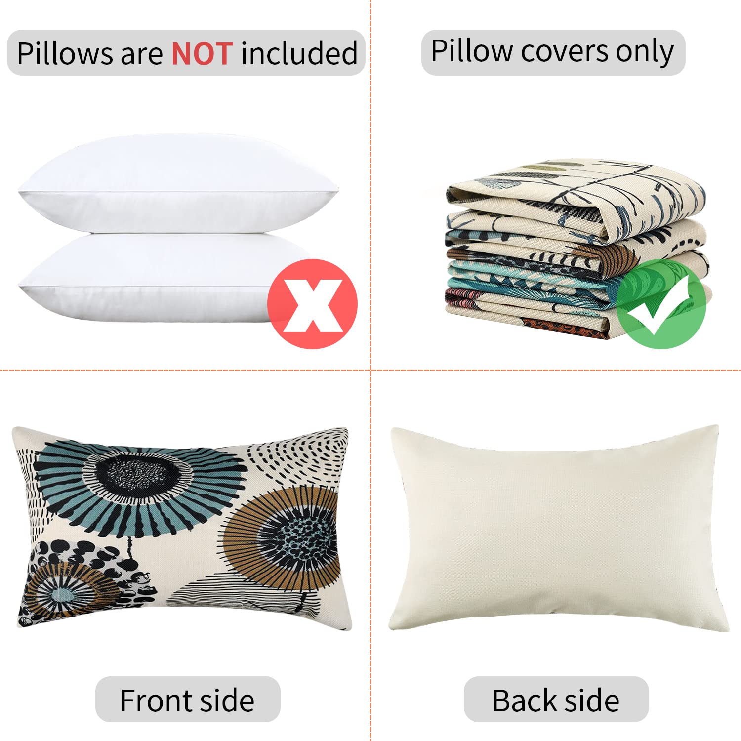 Funktionsdesign:Kissenhüllen aus leinen sind umweltfreundlich, antibakteriell und nicht hautreizend.Kleine lücke auf der stoffoberfläche, massieren die haut und fördern die durchblutung.Atmungsaktiver leinenstoff, warm im winter und kühl im sommer.Nur eine seite hat ein blumenmuster.Zwei sätze von musterdesigns, bunt und nicht eintönigNiedlicher geometrischer blumendruck, vintage, rustikal, stilvoll.Verdeckter reissverschluss für einen eleganten look.Perfekte ergänzung für kissenhülle, kissenbezug , wohnkultur, wohnaccessoires, büro, garten, korridor, schlafsaal, klassenzimmer, auto oder andere ruhebereiche im innen- und aussenbereich und so weiter.