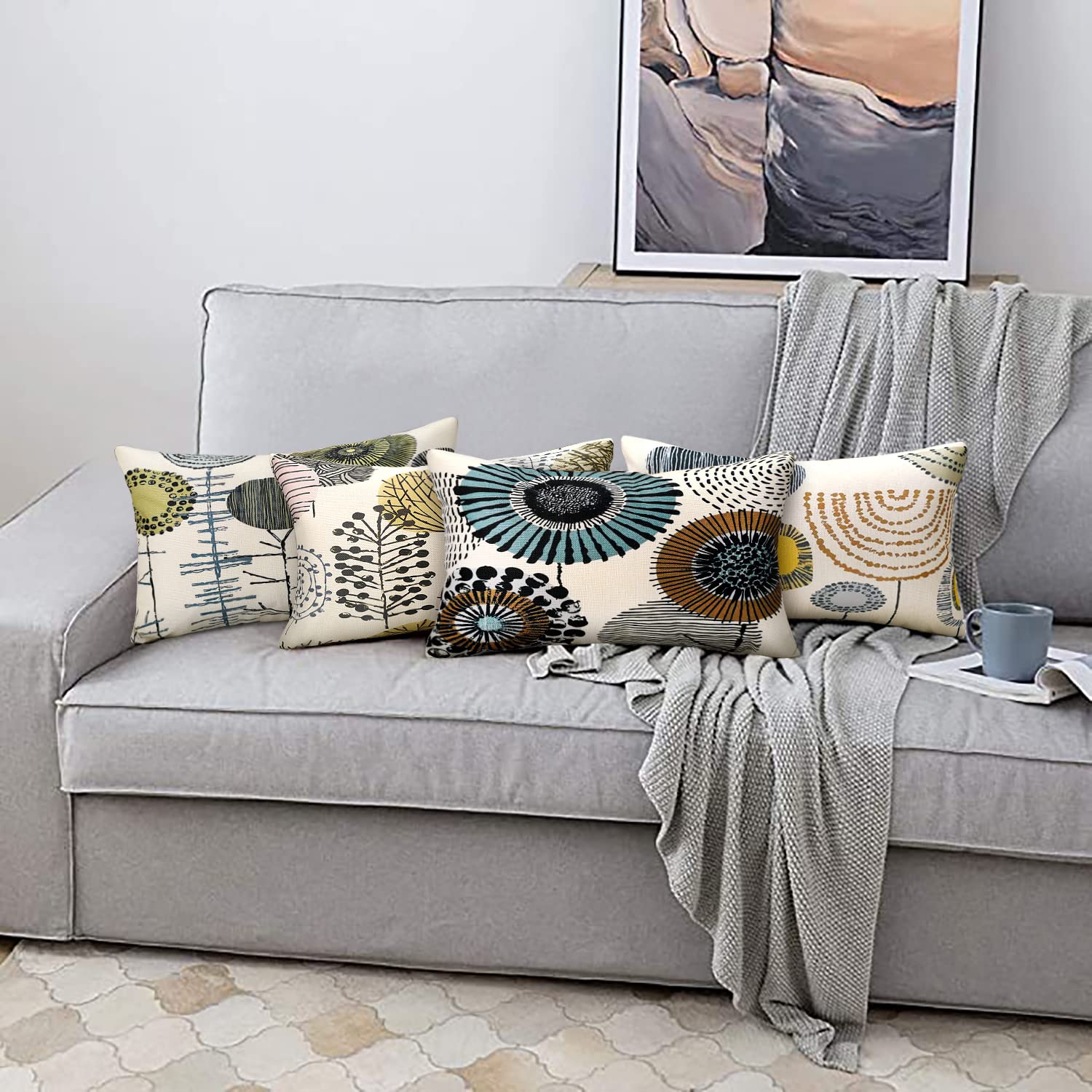 RYBornament Sonnenblumen Kissenbezüge 30x50 Kissenbezüge Grau Kissenbezug Leinen Zierkissenbezüge 4er-Set Kissenhülle Kissenhüllen Passend Für Wohnzimmer Garten Sofa Kissen Dekoration