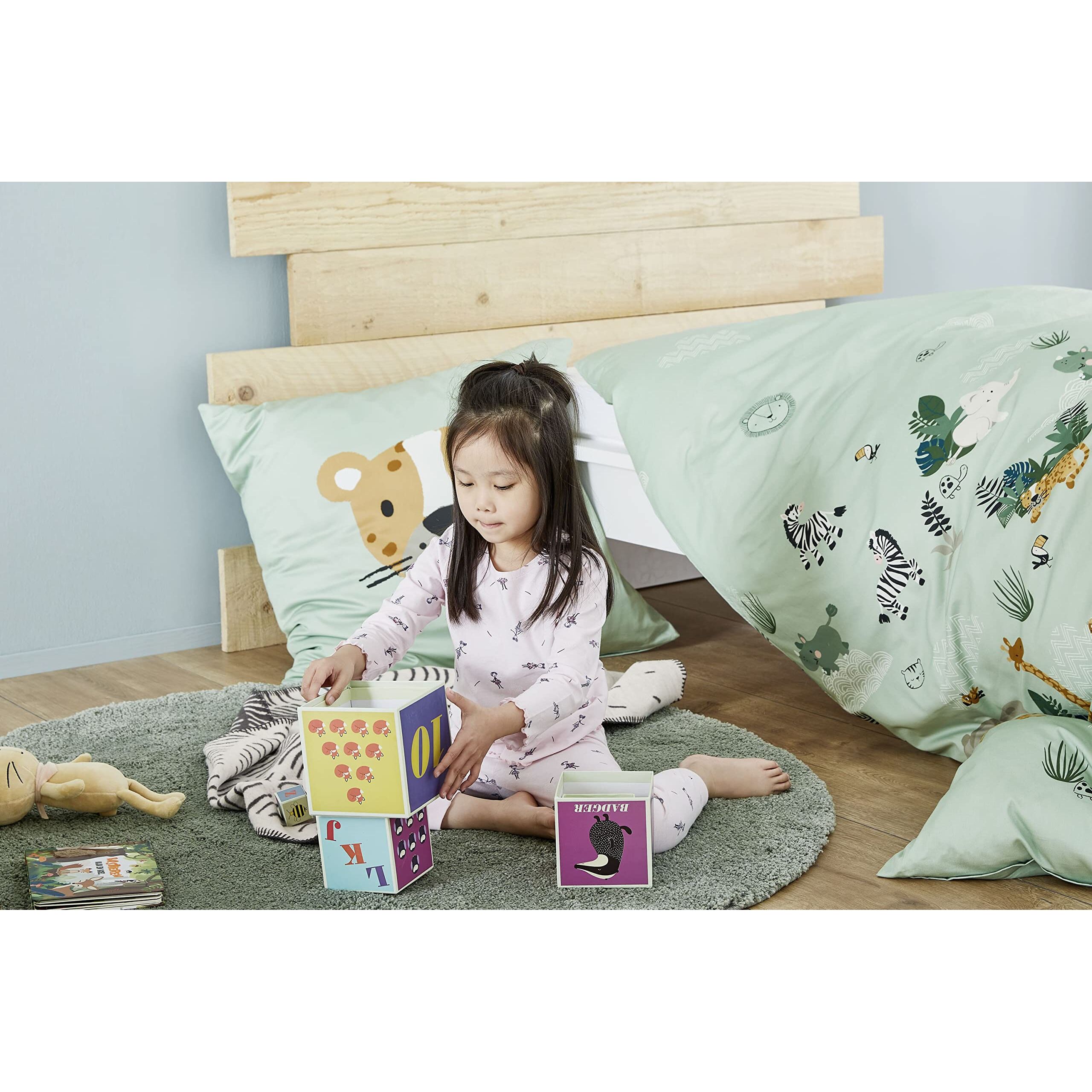 s.Oliver Kinderbettwäsche Tiere 135x200 cm - 100% Baumwolle, praktischer Reissverschluss & maschinenwaschbar, Bettwäsche für Kinder 2tlg. Zootiere hellgrün