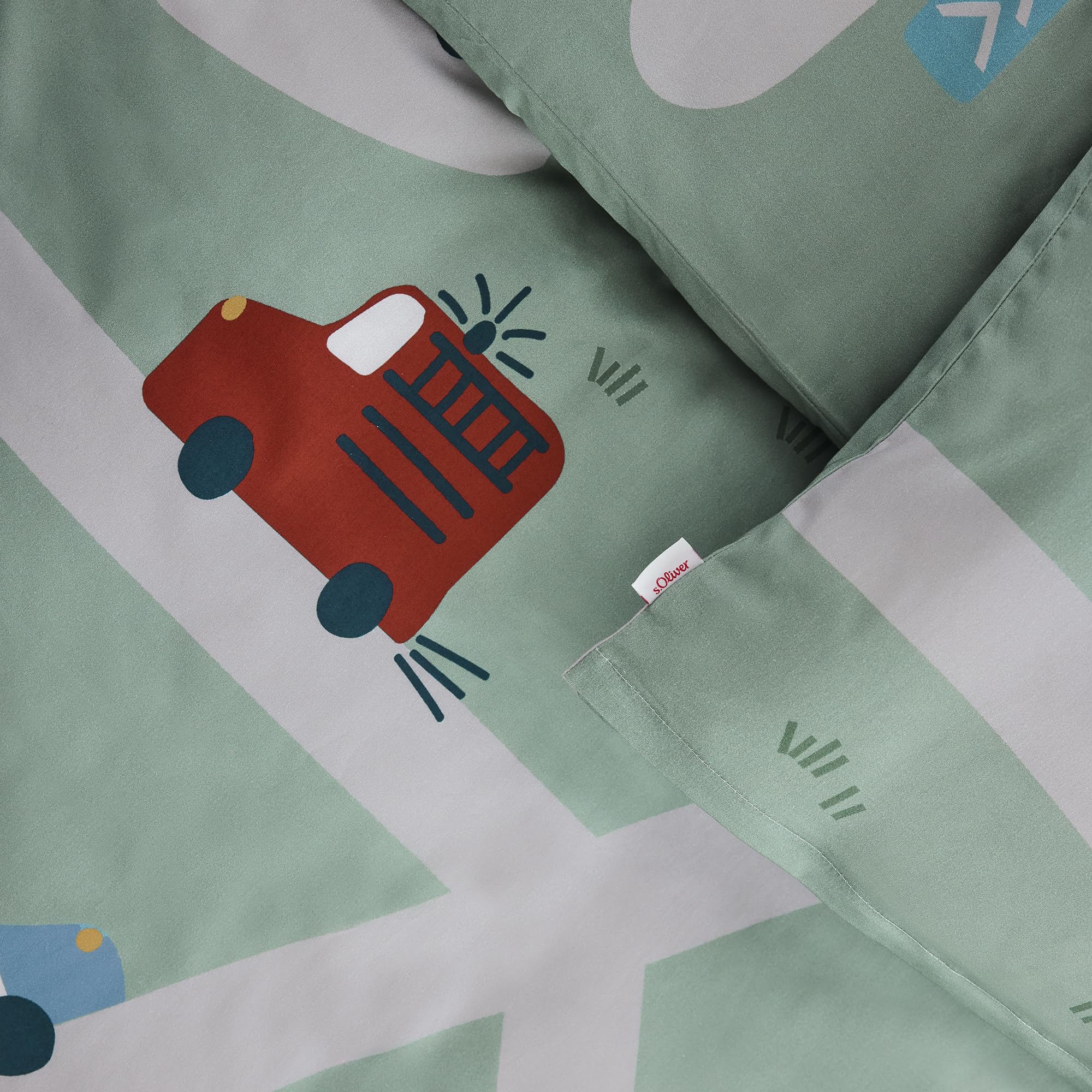 s.Oliver Kinderbettwäsche Auto 100 x 135 cm - 100% Baumwolle, Reissverschluss, anschmiegsam, weich & waschbar, Mako Satinbettwäsche mit Autos mehrfabig